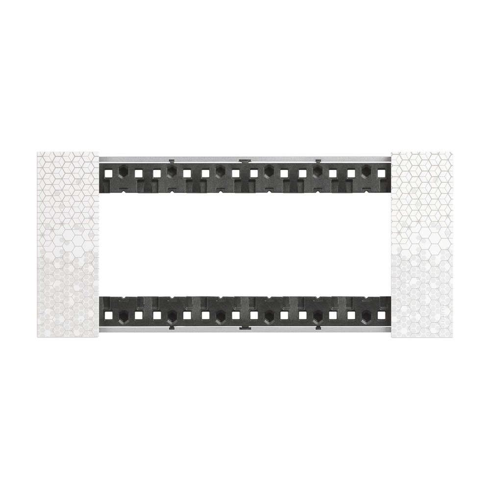 Декоративната рамка BTicino Living Now KA4806MW (италиански стандарт) е модел с 6 модула с финиш PIXEL | Пиксел, предназначен за изграждане на по-големи комбинации от механизми в една обща линия без разделители.