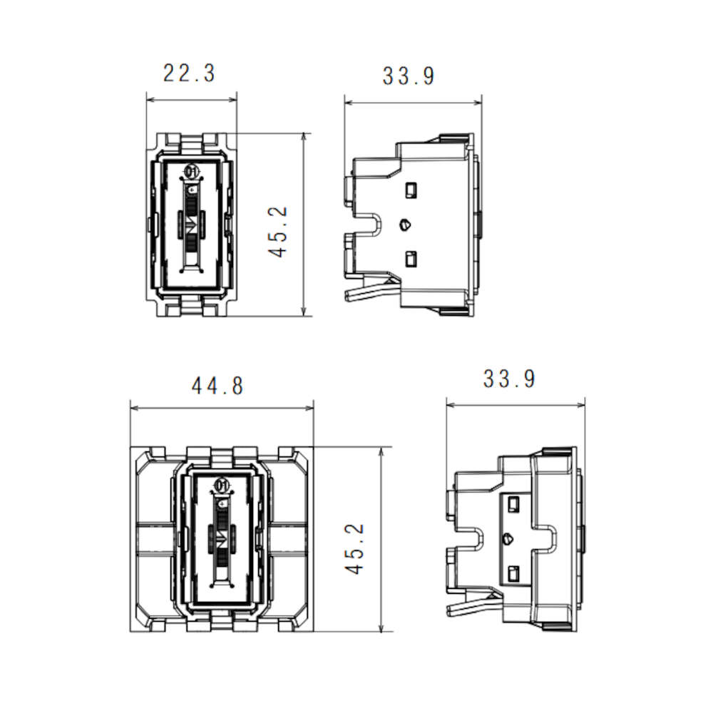 2-модулният формат предоставя по-широка активна площ, което прави използването още по-удобно, особено в натоварени пространства. Автоматичните клеми позволяват бързо, сигурно и безинструментно свързване на проводниците, като намаляват времето за монтаж и риска от грешки.