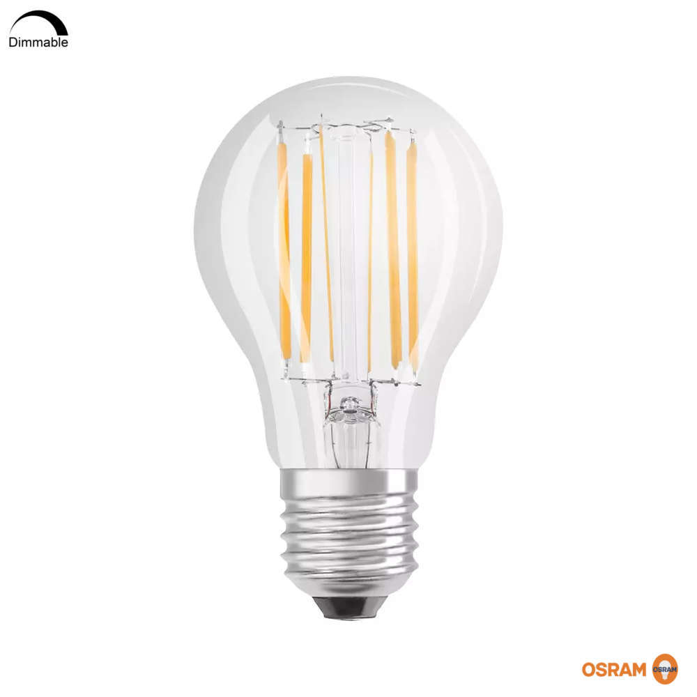 Димируема лампа Osram Parathom CLAS A E27 GLS LED Bulb 9 W - винтидж ламп ас функция димиране светеща в топла 2700К светлина. Крушката е с висок индекс на цветопредаване >CRI80, гарантиращ качеството на цветовете. Светлинният добив от 1055lm я прави подходяща за основно осветление за дома, офиси или заведения. Димируемата LED крушка Osram Parathom 4058075439214 се предлага с гаранция 24 месеца.