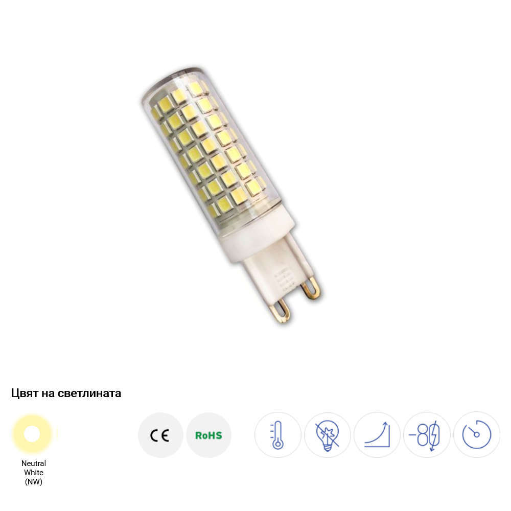 Димируема LED крушка Optonica 1645 с цокъл G9, мощност 6W, захранване 220-240V AC, неутрална бяла светлина 4500K и ъгъл на излъчване на светлината от 320°. LED крушката е икономична, надеждна, дълготрайна и с много добро качество, като може да замести класическите димируеми крушки с цокъл G9 с мощност 45W.