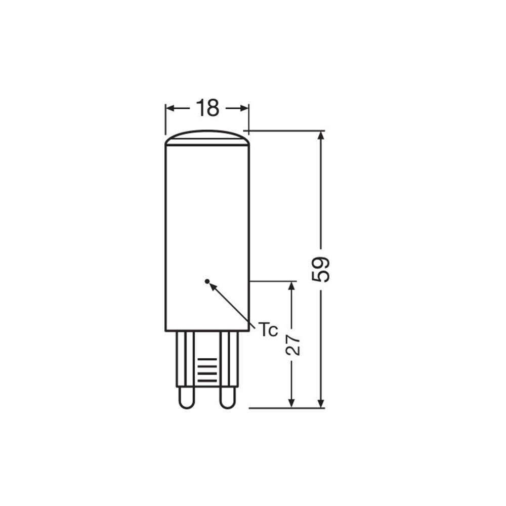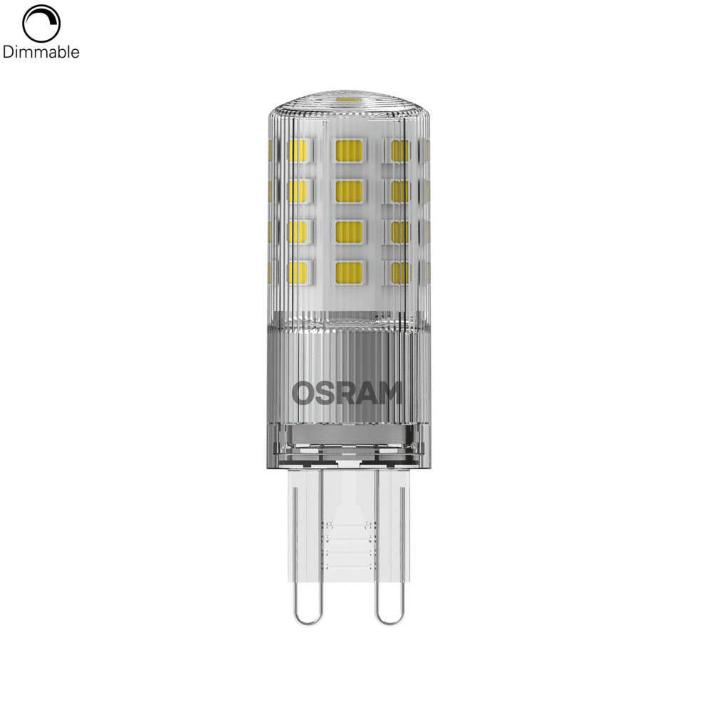 Димируема LED крушка G9 Osram Parathom LED Pin G9 470lm 2700K Dim - висок клас димируема G9 лампа Osram 4058075271791. Крушката е с мощност 4.4 вата, еквивалент на капсула от 40 вата светеща в топла 2700К светлина. Изключително големия ъгъл на разпръскване на светлината от 320° я прави подходяща за основно осветление за дома, офиса, за заведения.