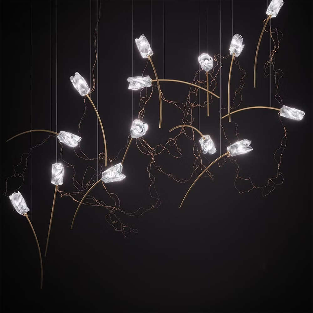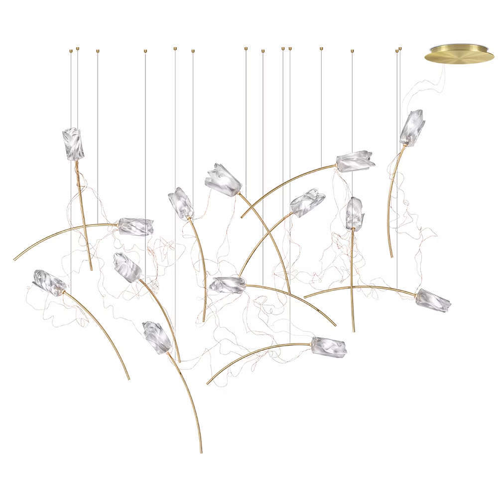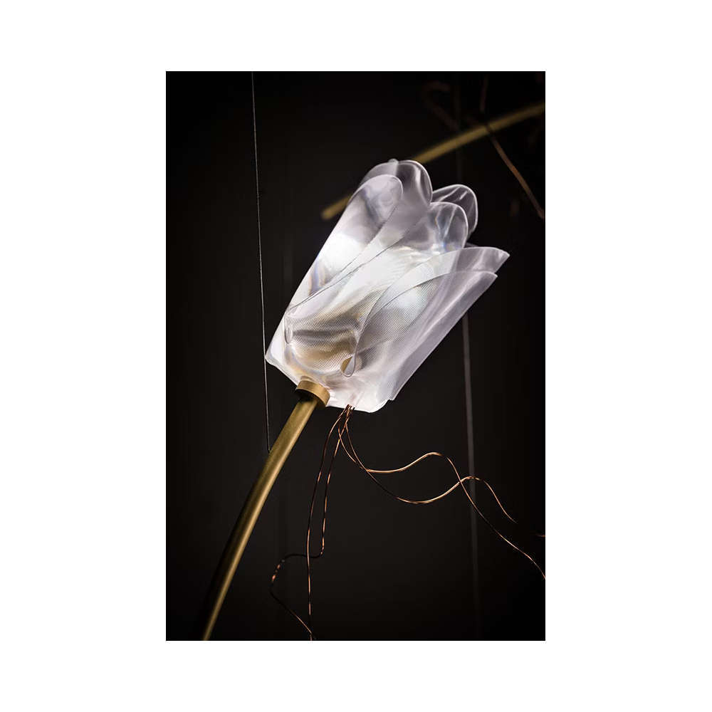 Висящо дизайнерско осветително тяло изработена от месинг и Lentiflex, включени 14 димируеми LED крушки G4 5W, 6300lm, 2900K