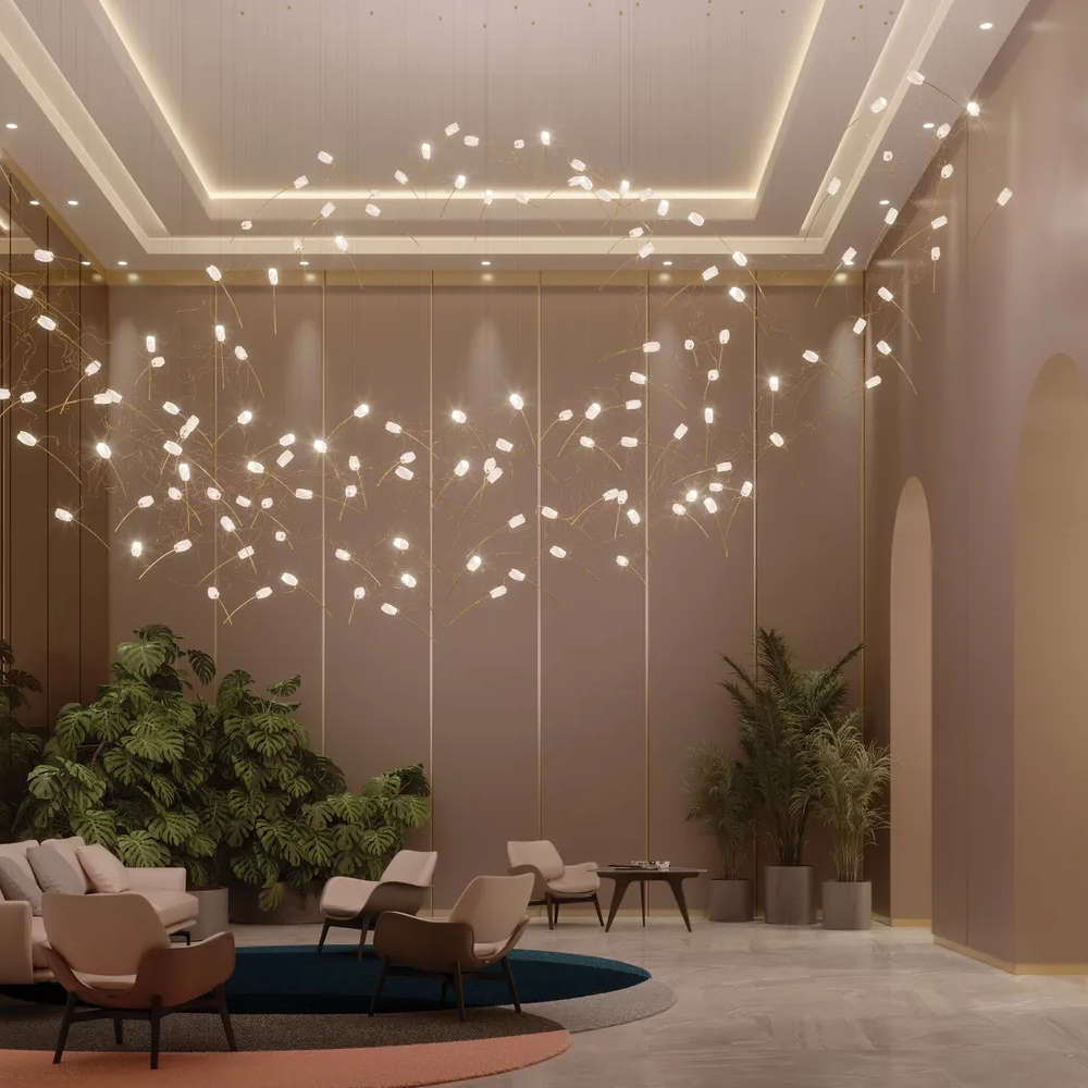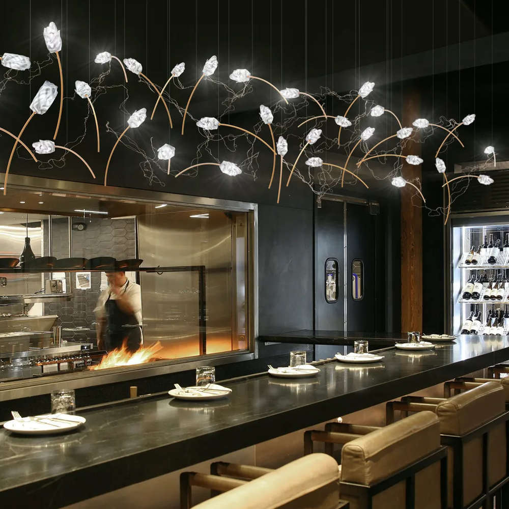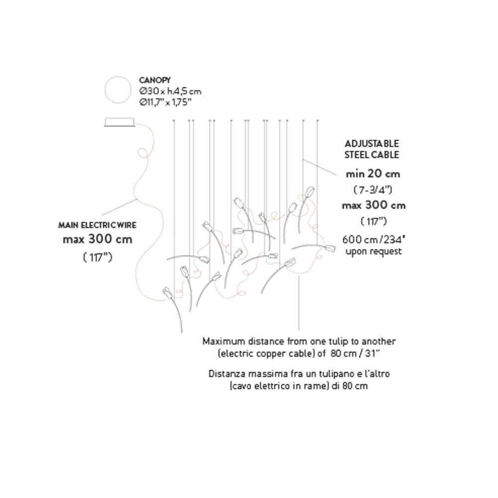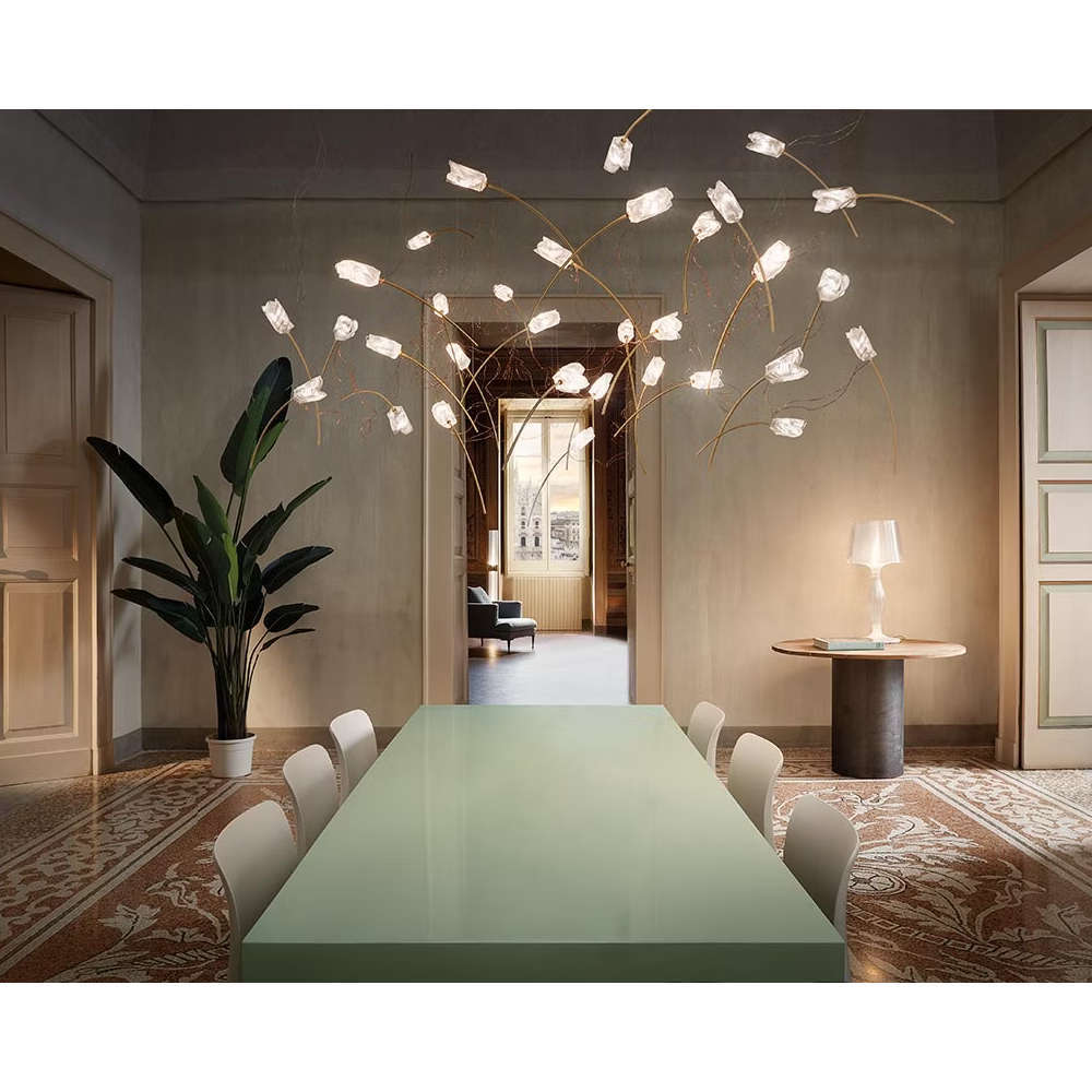 Висящо дизайнерско осветително тяло изработена от месинг и Lentiflex, включени 14 димируеми LED крушки G4 5W, 6300lm, 2900K