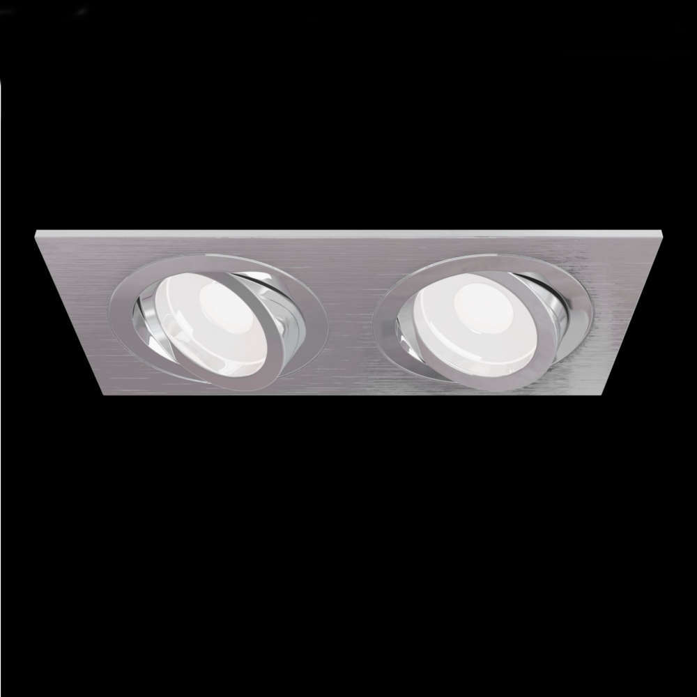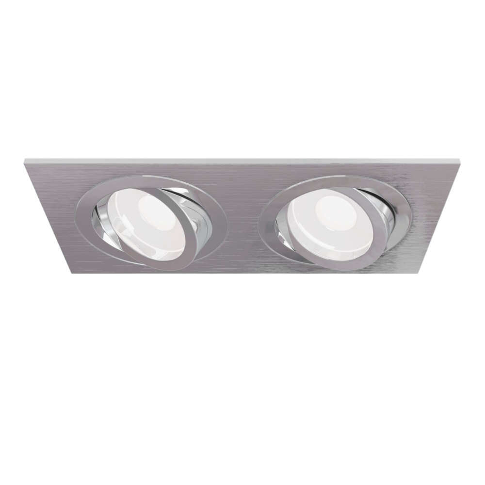 Луна за вграждане с насочване двойно сребристо тяло, 2 фасунги GU10, цвят драскан алуминий, без лучники в комплекта