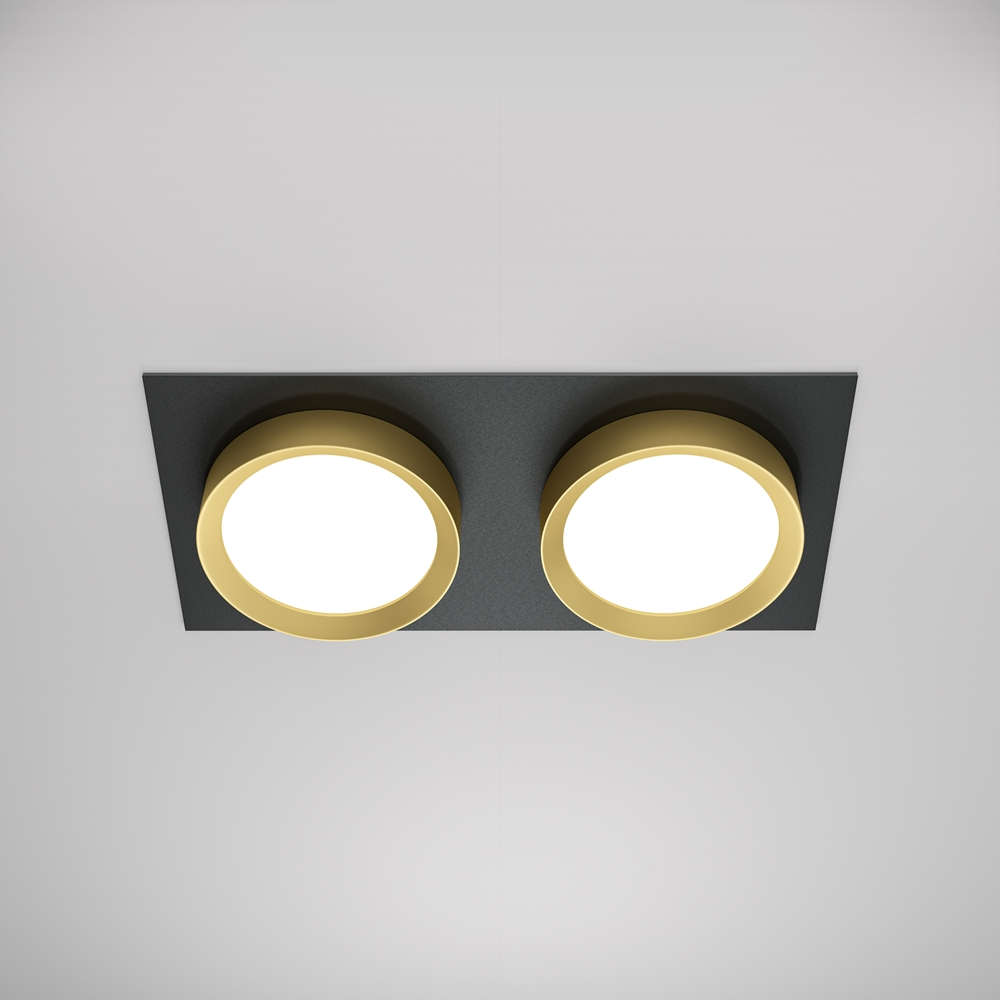 Двойна луничка за вграждане Maytoni Hoop GX53 DL086-02-GX53-SQ-B с две фасунги GX53, алуминиево тяло в черно и мат златно и бели дифузери.