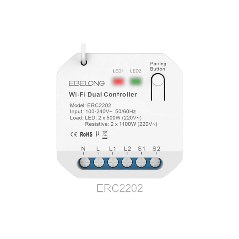 Ebelong ERC2202 е иновативен двуканален RF контролер, предназначен за интелигентно управление на осветлението в дома или офиса. Със своята компактна конструкция и възможност за монтаж в стандартни конзолни кутии, този контролер предлага лесна интеграция без необходимост от допълнително окабеляване. Поддържа управление чрез безжични кинетични ключове и традиционни лихт бутони (push), осигурявайки гъвкавост и удобство. Съвместим с различни системи за умен дом, ERC2202 е идеален избор за модернизиране на осветителната инсталация без сложни окабелявания. Двуканален RF контролер Ebelong ERC2202 включва възможността за свързване с допълнителен хъб за управление чрез мобилно приложение и гласови асистенти (Google assistant, Amazon Alexa).