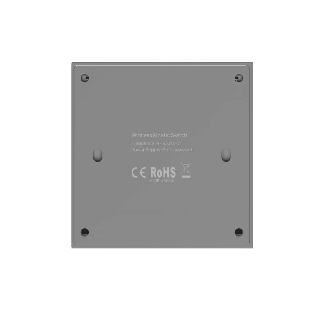 Единичен кинетичен push бутон на 433 MHz, без батерии и окабеляване, в елегантен сребрист цвят с IP67 защита — надеждно on/off управление за една осветителна зона, подходящ за вътрешна и външна употреба.