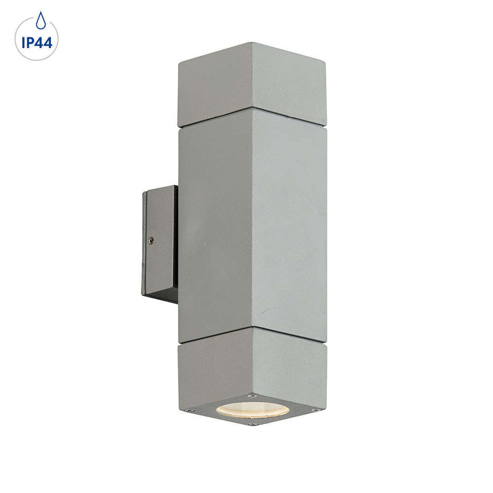 Външно осветително тяло за стена IP44 фасунга GU10 светене двустранно алуминий и стъкло сив цвят