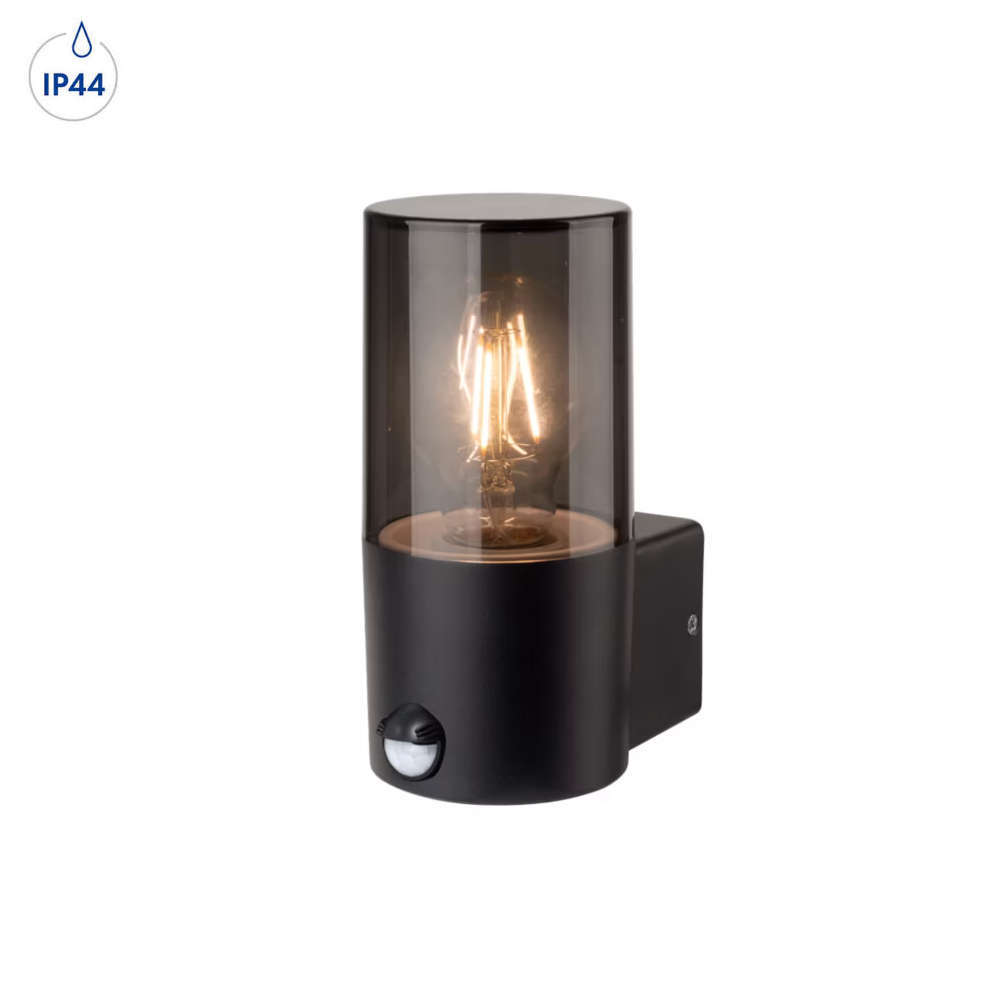 Външно осветително тяло за стена с PIR сензор IP44, 220V, фасунга Е27, алуминий и PC, черен цвят