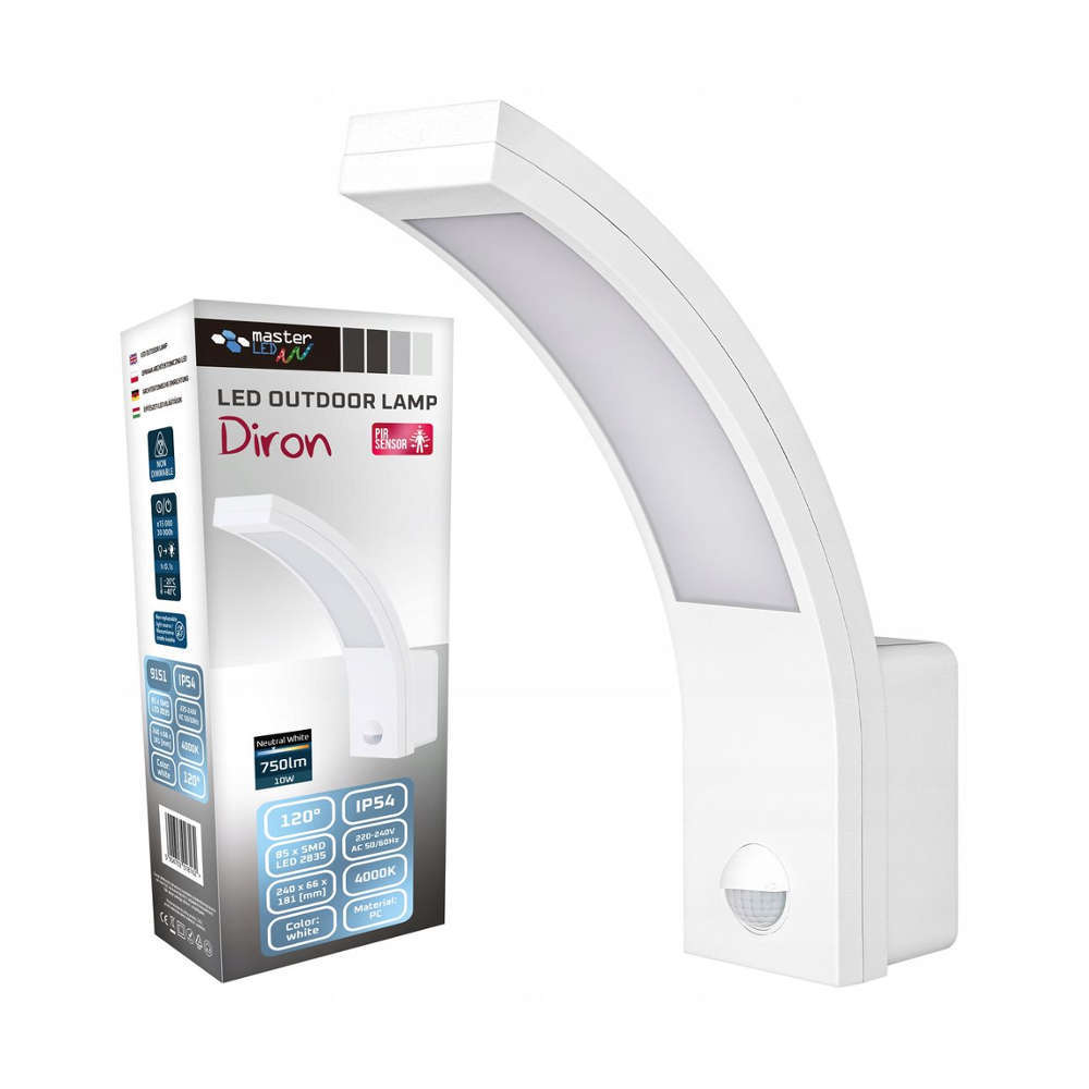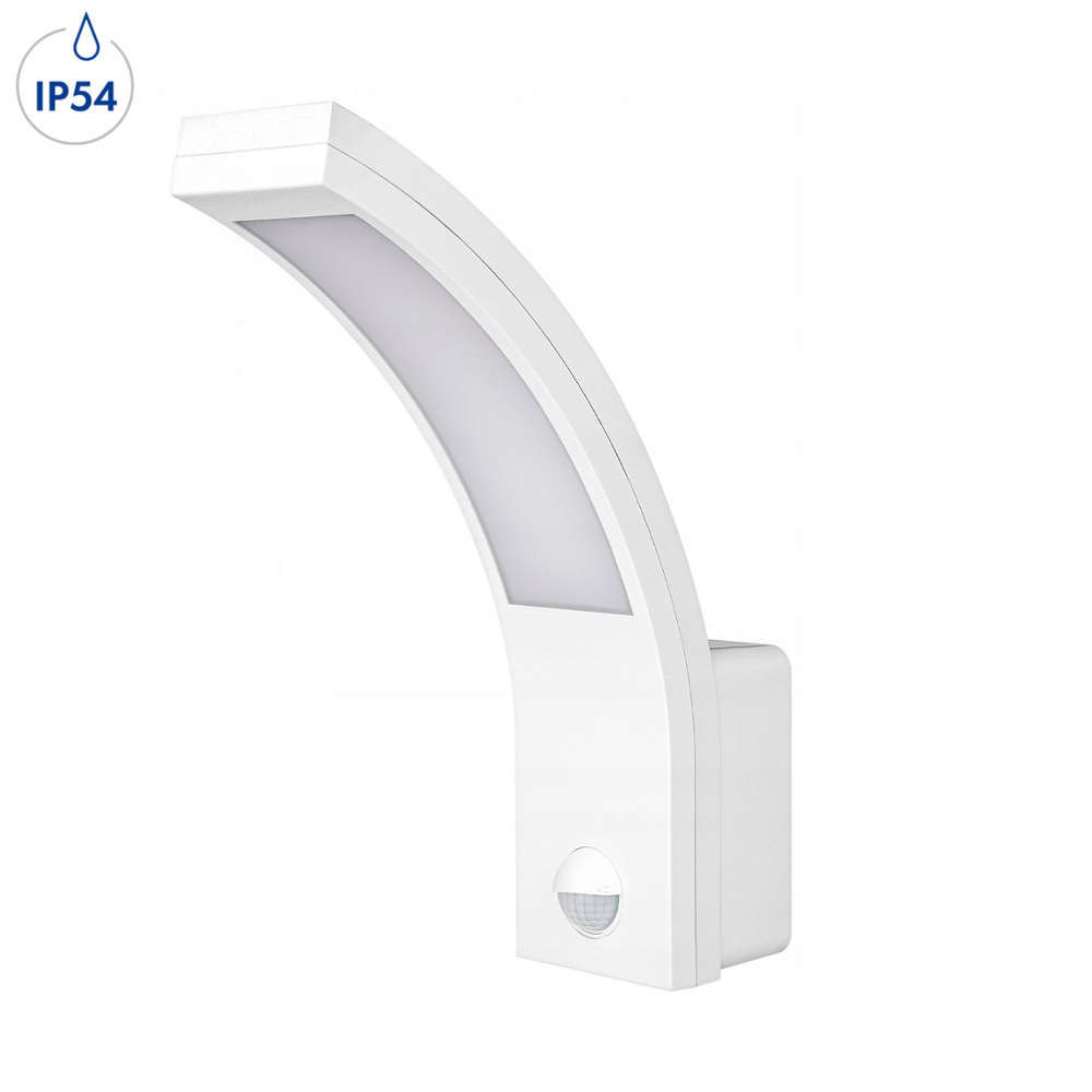 Осветително тяло за стена IP54 LED 10W, 220V, 750lm, 4000K, с PIR сензор, поликарбонат, бял цвят