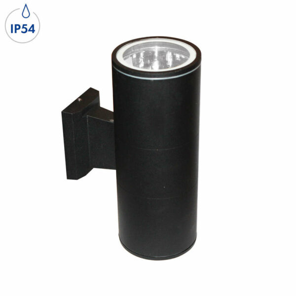 Фасадно осветително тяло Aca Lighting HI7001B - двулъчева външна лампа с влагозащита IP54 (защитена от прах и пръски вода върху корпуса). Тялото е изработено от лят алуминий със специална защита срещу слънчева UV радиация и двустранен стъклен закален прозрачен дифузер. Консумация на инсталираната крушка не трябва да надвишава 2x60W max.