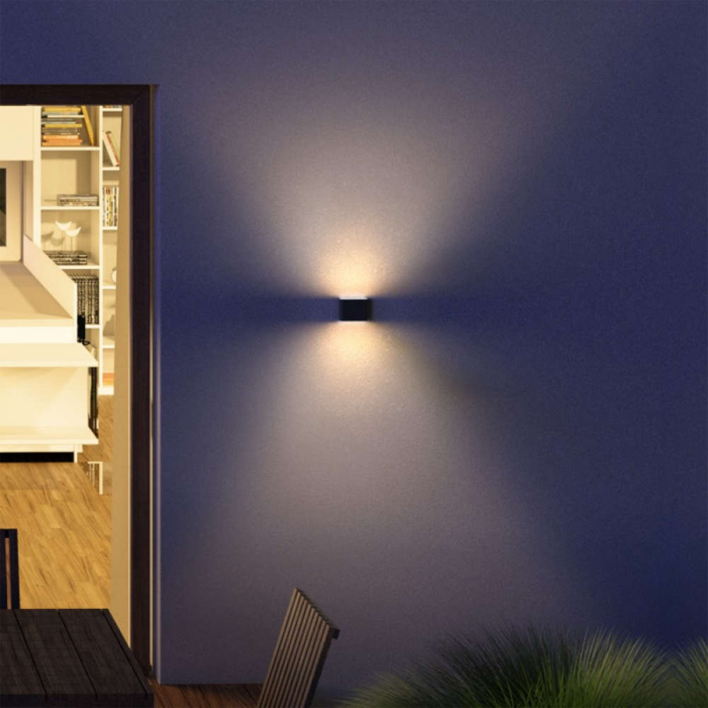Фасаден аплик IP54, 220V, 2x5W, 660 lm, 3000K, двустранно светене, алуминиев корпус, цвят антрацит