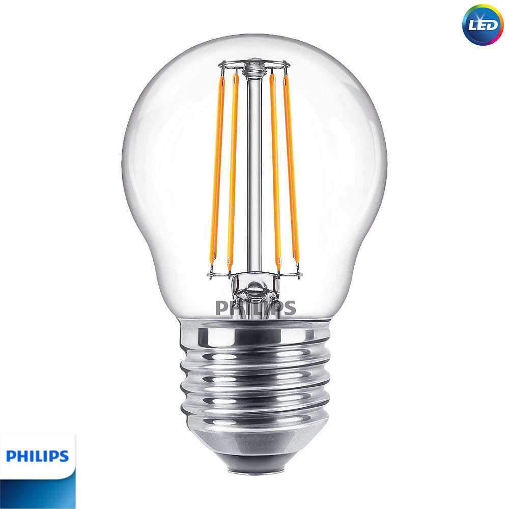 Филамент LED лампа Philips Core Pro LED Luster ND 4.3-40W E27 827 P45 CLG - нов модел крушка Филипс с висока мощност от 4.3W и ъгъл на светене от 360°, еквивалент на класическа лампа от 40W. Подходяща за основно осветление в домашни помещения или заведения. Филамент led крушка Philips с дълъг полезен живот и гаранция от 24 месеца.