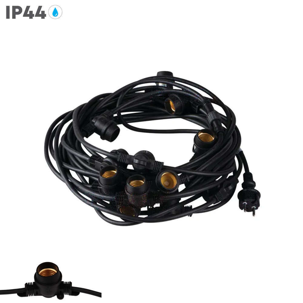 Светлинен гирлянд за външни условия 220V, IP44, 15 фасунги с херметичен конектор, без лампи в комплекта