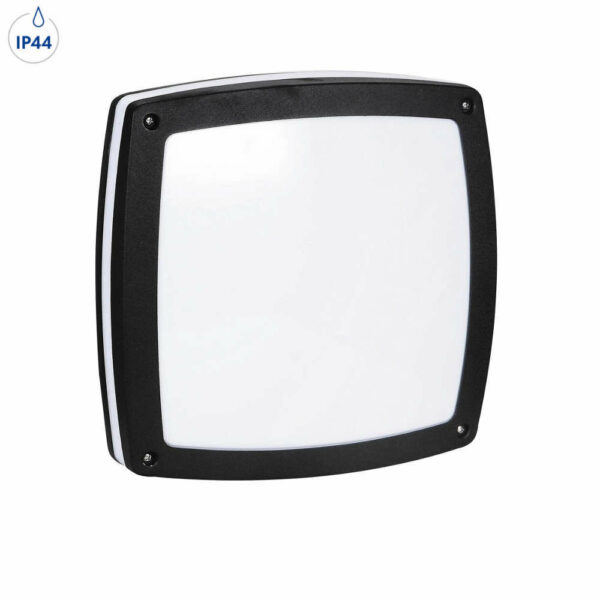 Влагоустойчив плафон IP44 - модерно квадратно осветително тяло за монтаж на таван или стена. Изработен от алуминий и UV поликарбонатен разсейвател, плафонът е подходящ за осветяване на тераси, фасади, веранди, беседки. Тялото е с интегрирани две фасунги Е27 и е подходящо за използване на LED лампи с максимална мощност 2х18W.