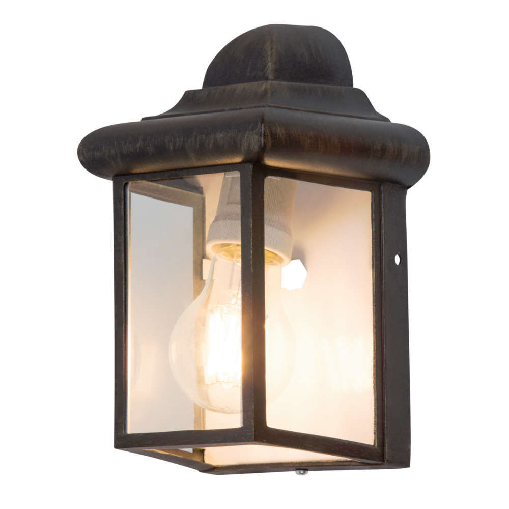 Външно осветително тяло градински аплик, 2 години гаранция, алуминий/стъкло, без светлинен източник, цвят антично злато