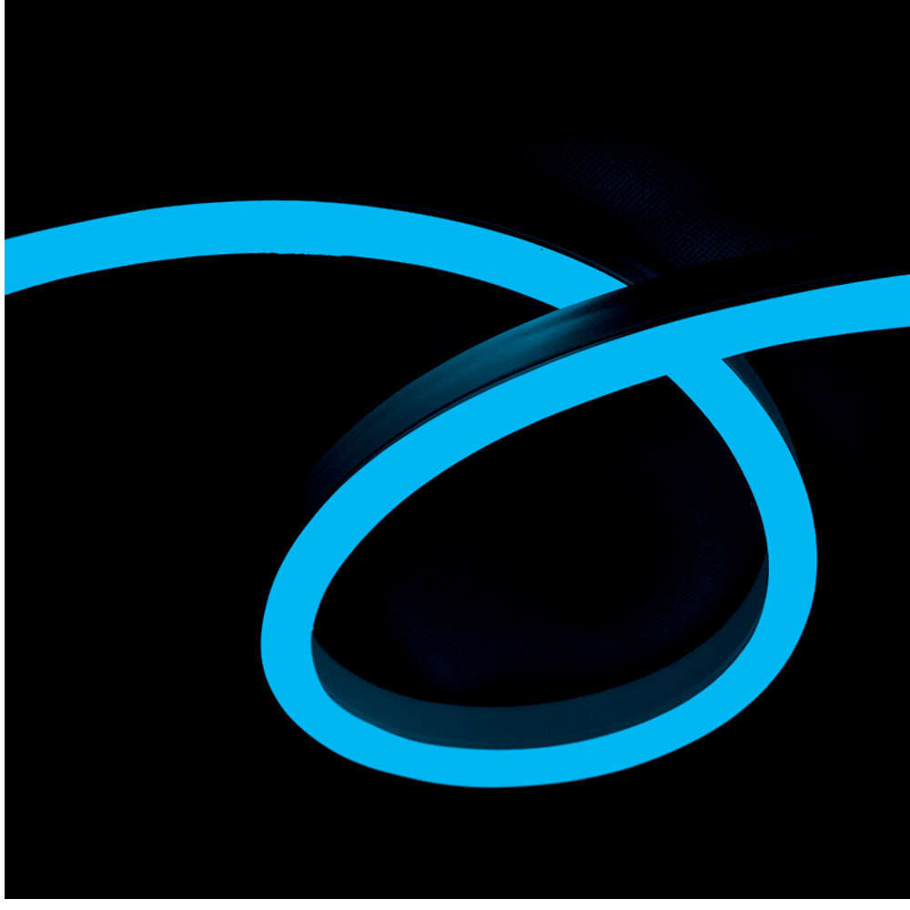 Led неон 24VDC - влагозащитен лед неон IP65 с мощност 12W на 1 линеен метър излъчващ синя светлина. Защитен от качествена силиконова обвивка 24V led неон е подходящ за изпозване на открито или закрито. Походящ за акцентно или декоративно осветяване. Предлага се в ролка от 10 метра. Рязане на 1 метър.