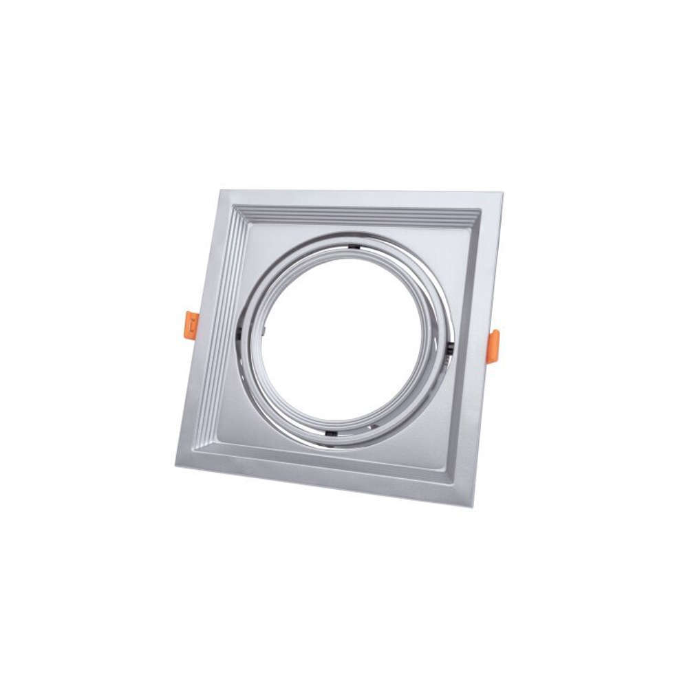 Квадратни луни за вграждане кардан - осветително тяло за вграждане използващо за светлинен източник лампа AR111. Карданна луна за лампа AR111 с ротация на тялото 25° спомагащо за прецизно насочване на светлината с приложения за акценто и основно осветление в магазини, търговски обекти, банкови учреждения, безиностанции. Луната е съвместима с всички модели лампи AR111.
