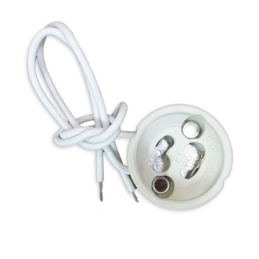 Керамична фасунга за LED лунички GU10 с PVC кабел с дължина 150 мм V-TAC 3423. Фасунгата е универсална и е подходяща за всички MR16 халогенни и LED лунички с цокъл GU10 на 220V AC.