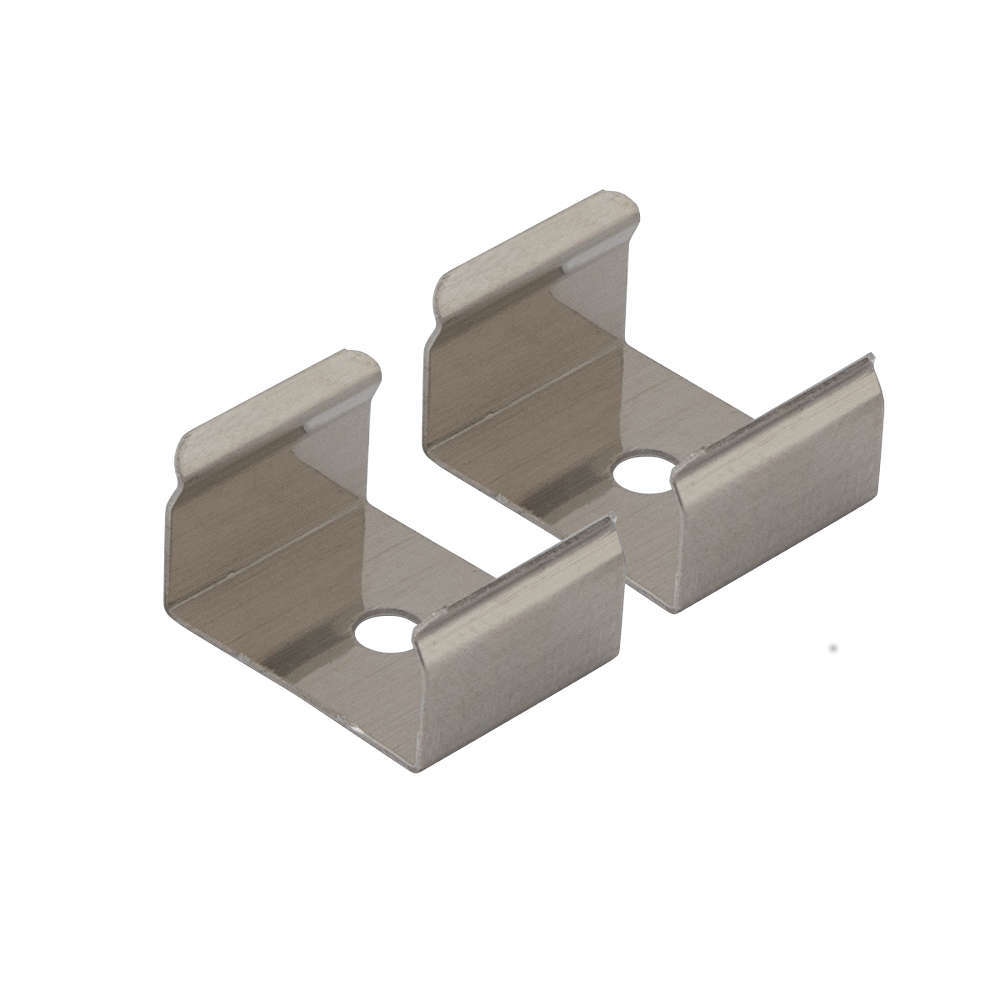 Комплект метални монтажни скоби Ultralux APK207MS, предназначени за стабилен открит монтаж на плитки алуминиеви профили за LED ленти APK207 и AP3207. Формата на скобите е съобразена със сечението на профилите и осигурява надеждно фиксиране.