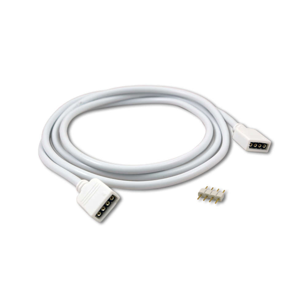 Гъвкав конектор за RGB LED лента - лед конектори за съединяване на многоцветни ленти. Дължина на кабела 5 метра завърващ с 4 пинови женски букси. В комплекта е добавена 1 брой мъжка четири пинова букса.