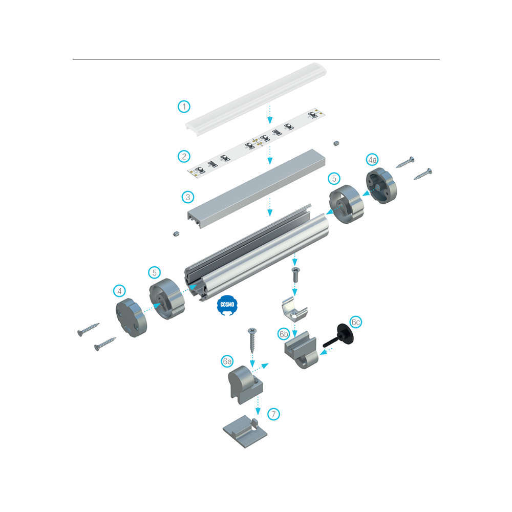 Lumines COSMO е кръгъл / регулируем профил за осветяване на интериора на шкафове - използва се като светещ лост на гардероба. Идеален за изработване на линейни LED осветителни тела за точково и декоративно осветление, както и за осветителни тела за картини.