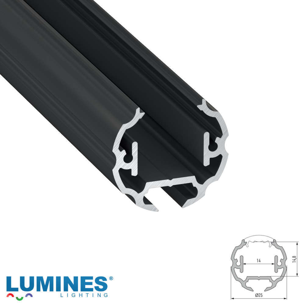 Черен кръгъл LED профил, дължина 3 метра, без дифузер
