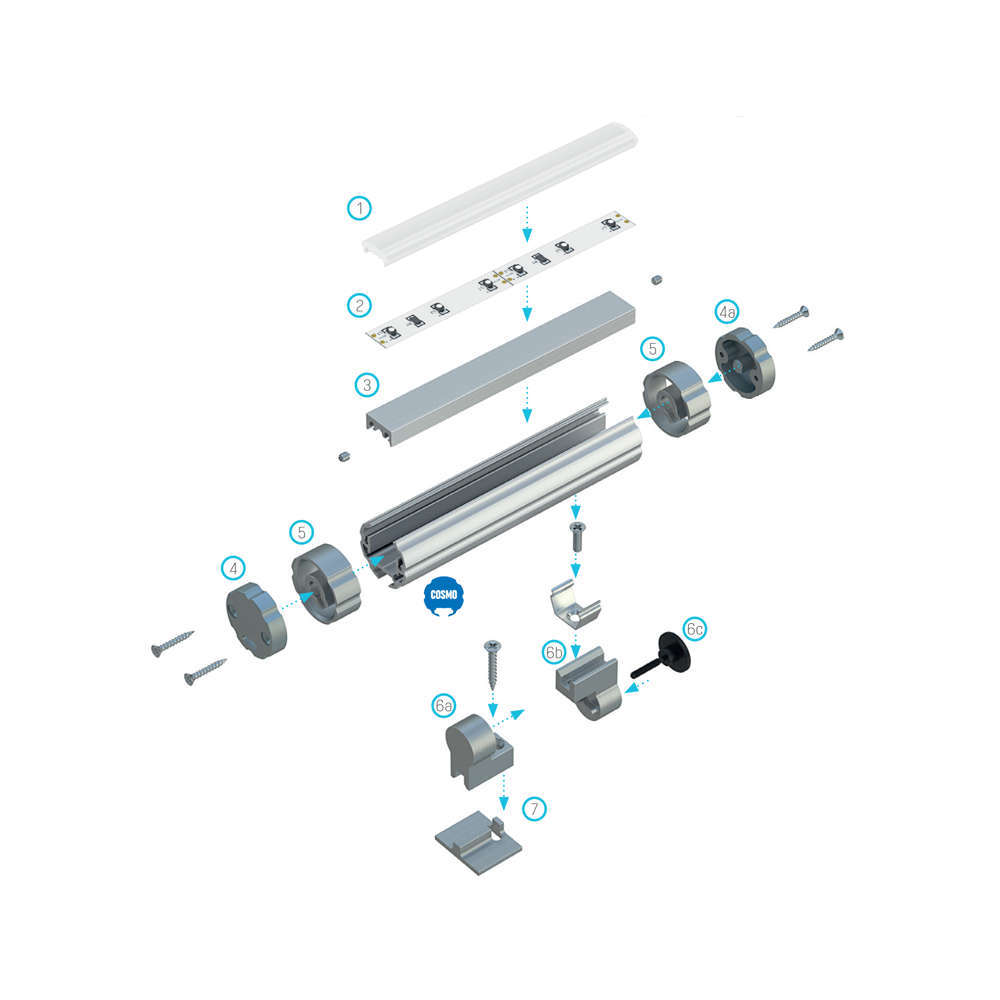 Lumines COSMO е кръгъл профил за осветяване на интериора на шкафове - използва се като светещ лост на гардероба. Идеален за изработване на линейни LED осветителни тела за точково и декоративно осветление, както и за осветителни тела за картини.