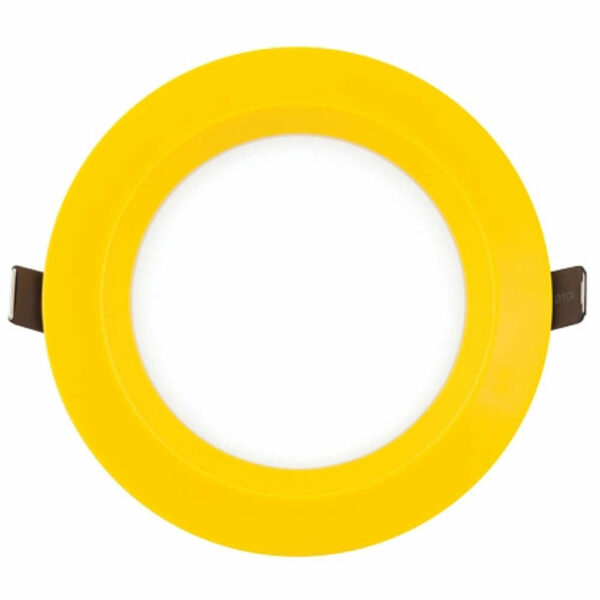 LED панел за вграждане с жълта рамка излъчващ топла 2700К светлина. Светлоизточника на лед панела са диоди тип SMD2835 с обща мощност 6W, осигуряващи много добре разсеяна светлина. Стилен LED опанел подходящ за домашно или търговско LED осветление.