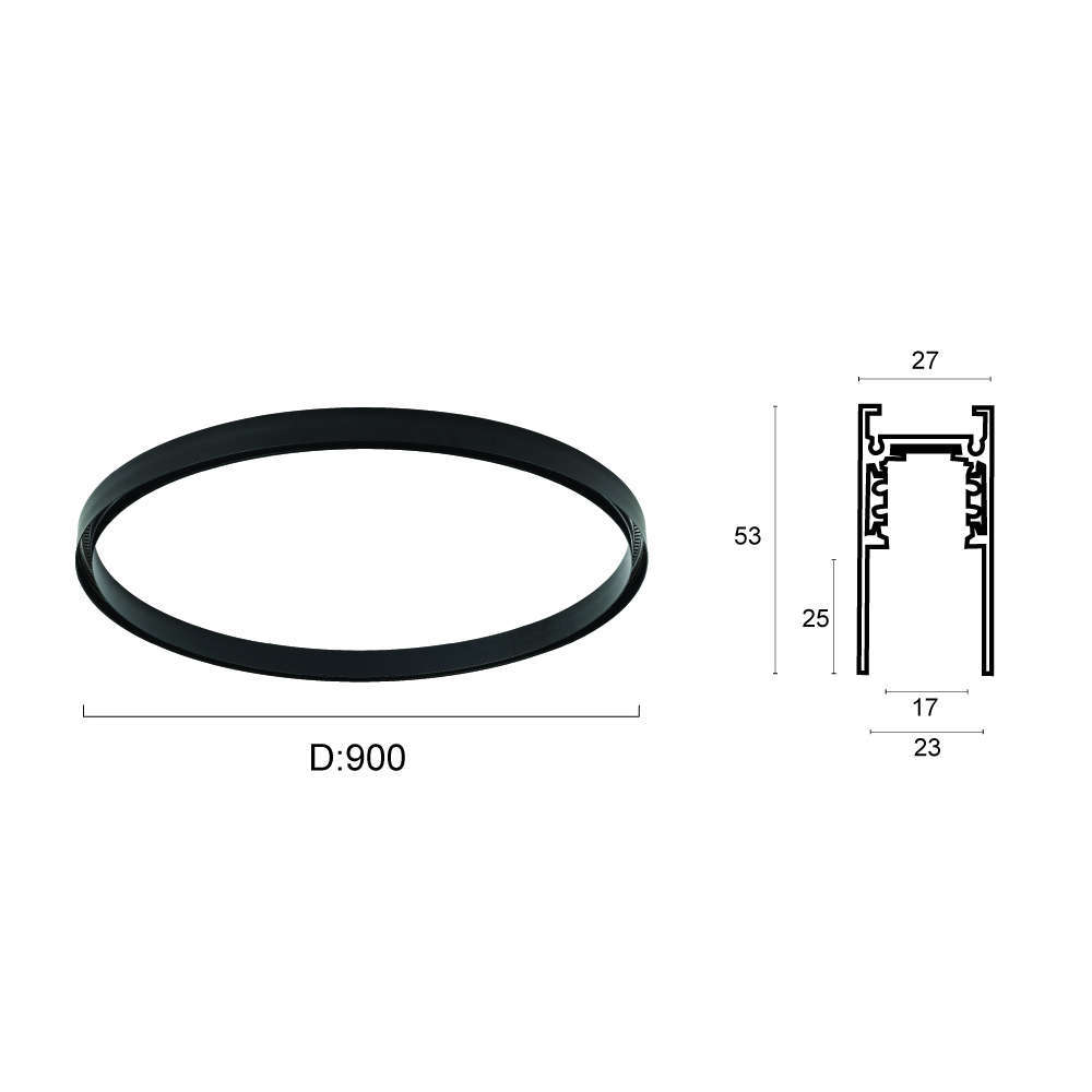 Viokef представя кръглата магнитна релса ф900mm – стилно и функционално решение, което преосмисля концепцията за осветление. Със своя елегантен извит дизайн, тя съчетава модерна естетика и практичност, позволявайки гъвкаво разпределение на светлината чрез лесно позициониране и преместване на осветителните модули в 48VDC магнитна система Viokef.