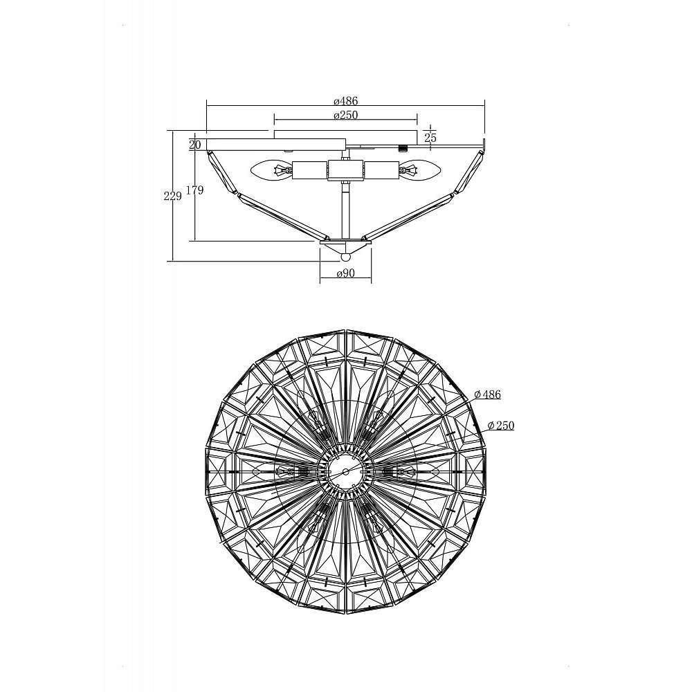 Кристален плафон Maytoni Facet MOD094CL-06G - модерен плафон изработен от метал с обков в златист нюанс и декоративен кристал с архитектурна шлифовка, представен от немския производител на осветителни тела Maytoni. Подходящ е за общо осветление в дневна, спалнята, кухнята, офиса или помещения в класически стил. Кристалният плафон е с основи 6xE14 и може да използва крушки с максимална мощност 6x60W. Серията Maytoni Face включва кристални плафони в цвят хром или злато за 4 и 6 лампи, както и кристални осветителни тела за стена.