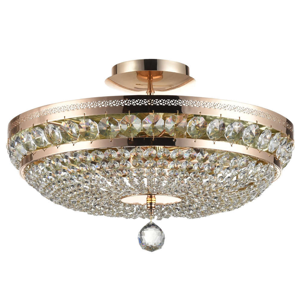 Кристален плафон Maytoni Ottilia DIA700-CL-06-G - обков - метал, абажури - злато, с обръч с перфориран орнамент. Декорацията на осветителното е с кристали с различни размери и разфасовки. Традиционната форма на антична купа. Кристален плафон Maytoni Ottilia DIA700-CL-06-G е с инсталирани 6 броя фасунги Е14, подходящи за LED лампи. Серията Ottilia се предлага и в други размери с 3 или 12 фасунги E14.