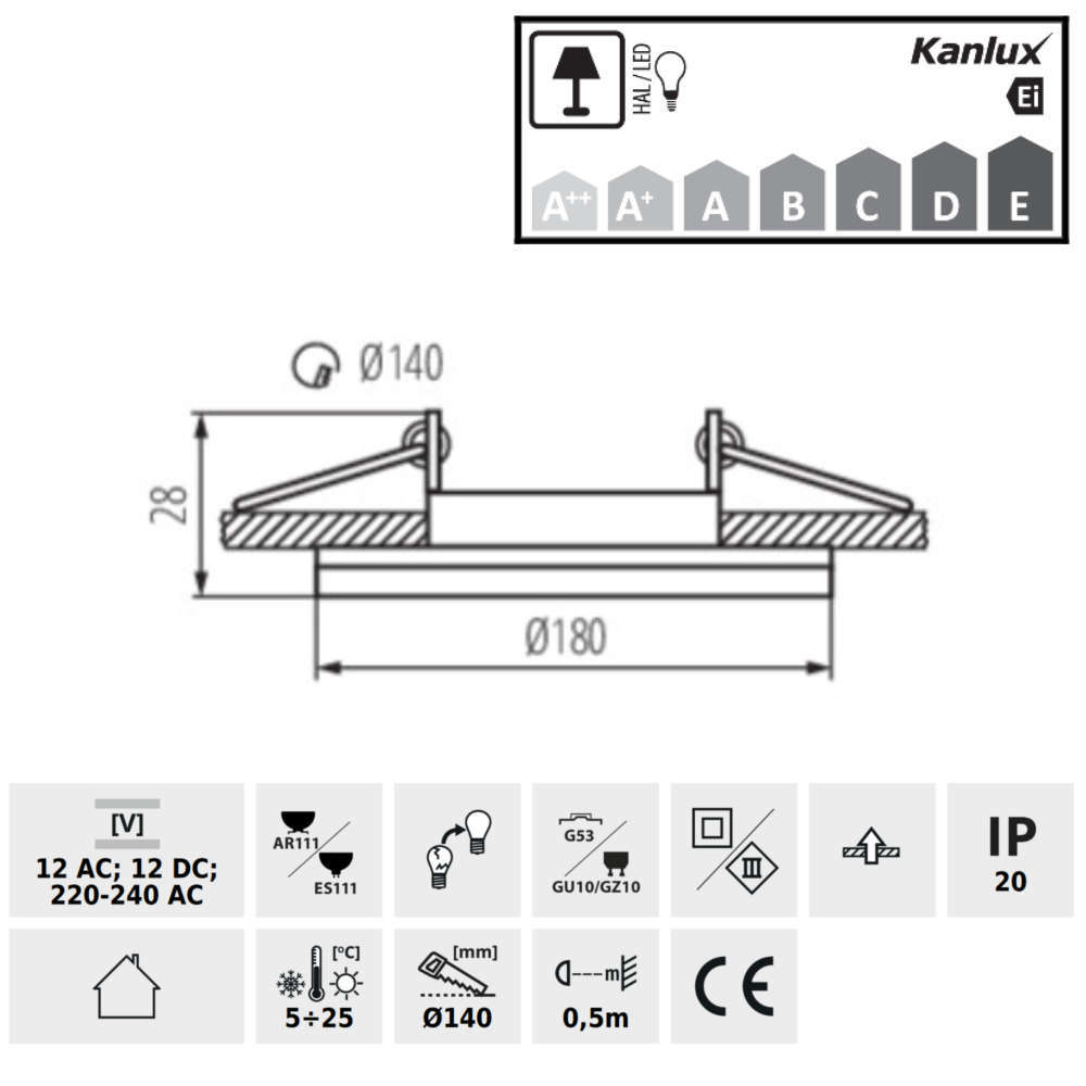 Карданна луна Kanlux MORTA AR/ES L-B, мощност max 1x50W, без фасунга и лампа в комплекта