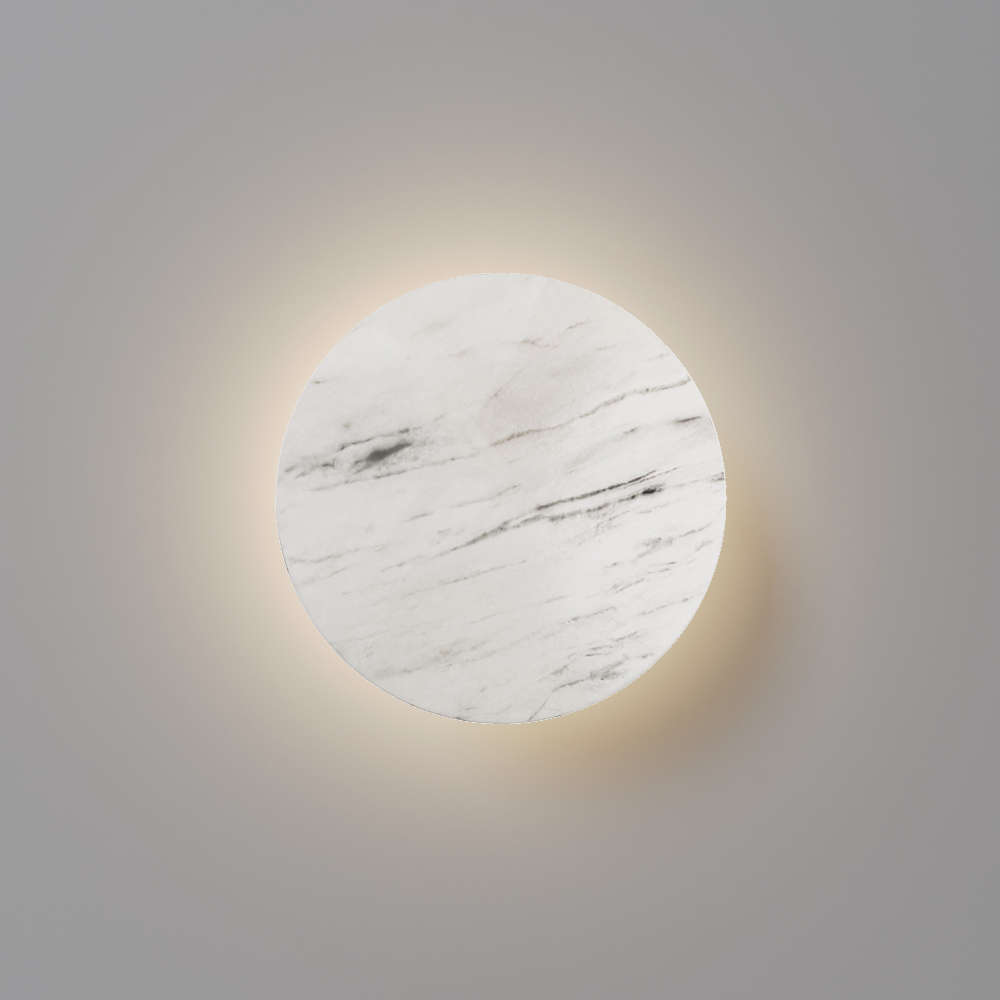 Maytoni Basic Texture MOD461WL-L5W3K е дизайнерска лампа за стена / LED аплик с фронт от бял мрамор и индиректно осветление. Моделът съчетава минималистична форма и светла естествена текстура, създавайки мек и елегантен светлинен ефект.