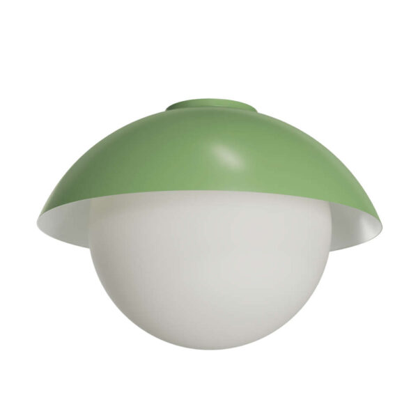 Елегантен плафон Osmont LUKIDA 3 LUK40010 Ø565x400 мм с метално тяло в Olive RAL6011 и ръчно издухан трислоен стъклен абажур TRIPLEX OPAL. С IP65 защита и фасунга E27, той осигурява равномерна и мека светлина. Подходящ за жилищни и обществени пространства. Предлага се и като висяща лампа от същата серия.