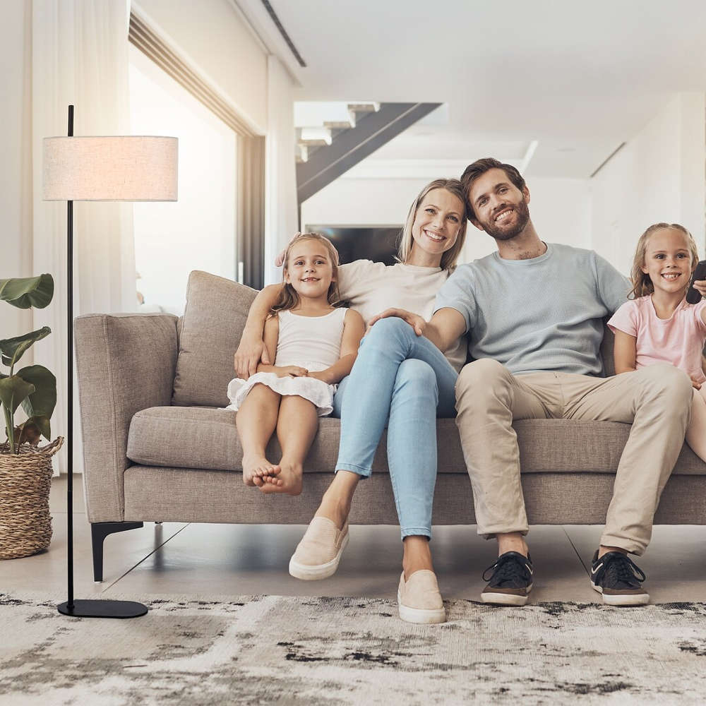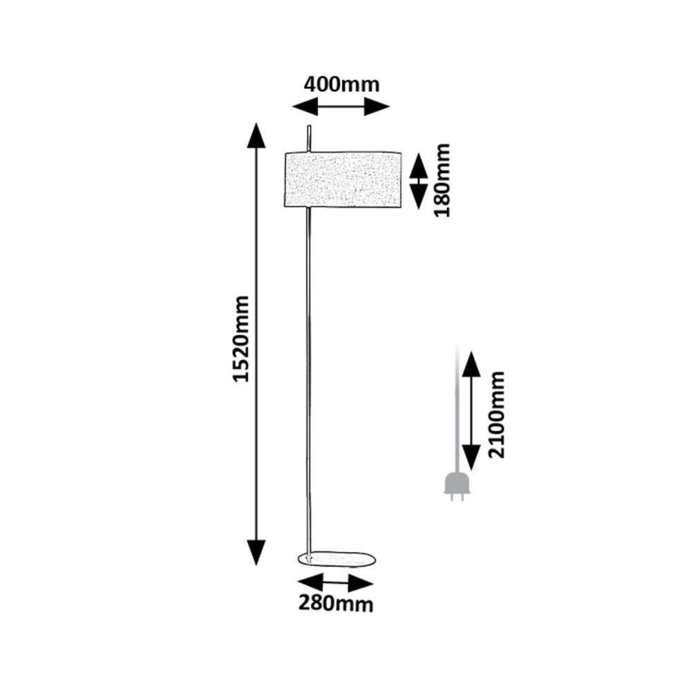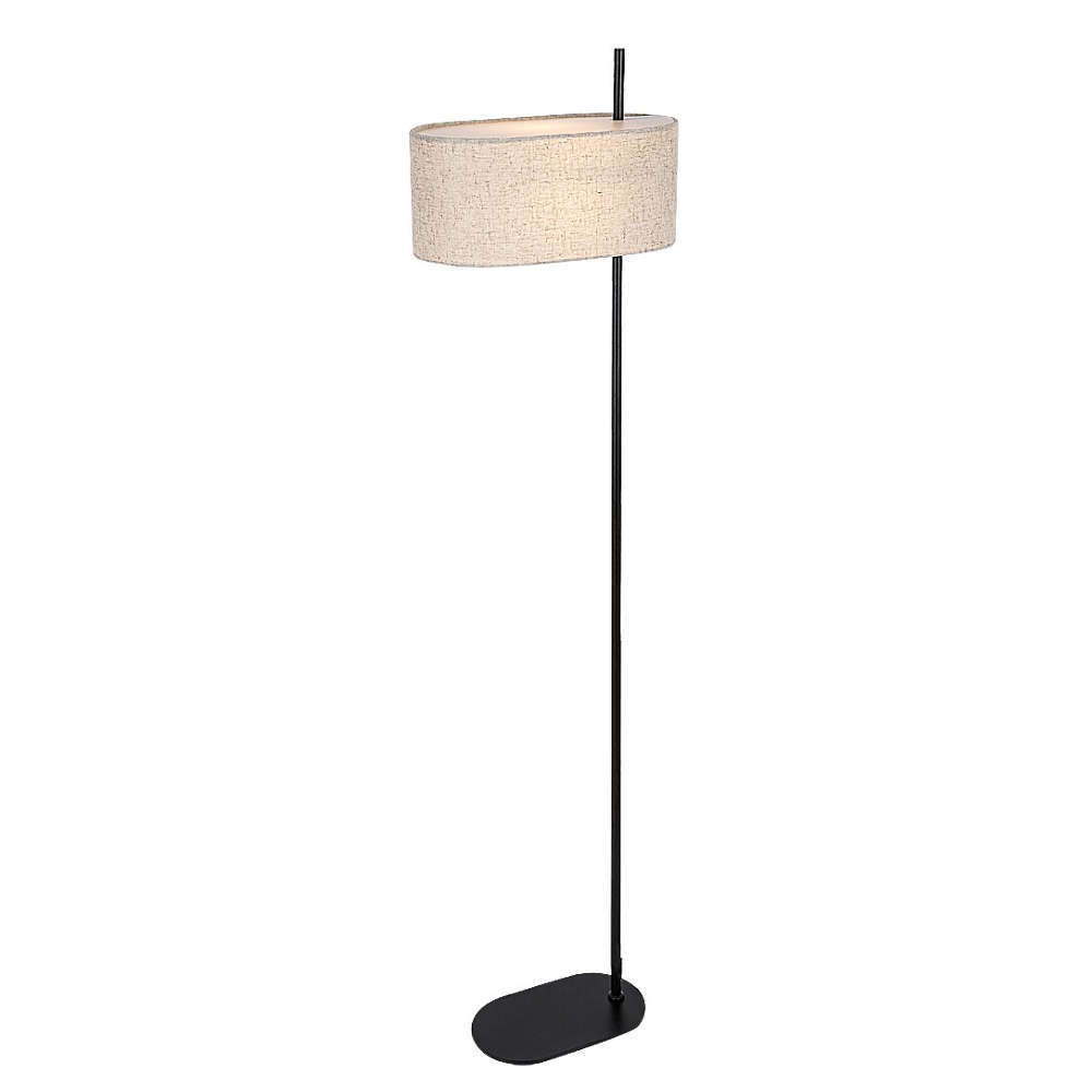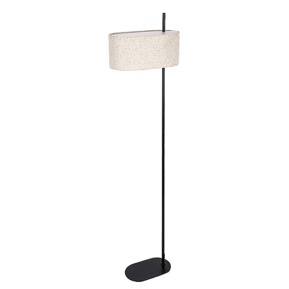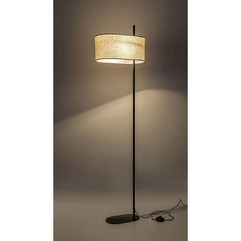 Стоящ лампион за хол с фасунга Е27, метал и текстил, цвят черно и бежово, кабел с ключ