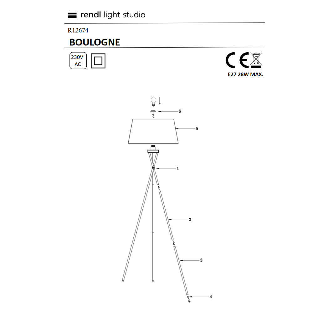Лампион Rendl Light Studio BOULOGNE R12674 - модерна подова лампа, подходяща за просторни помещения в дома, офис или хотел. Комбинация от метал и двупластов черен текстилен абажур. Фасунга Е27 за избор на крушка по желание. Интегриран кабел с ключ.