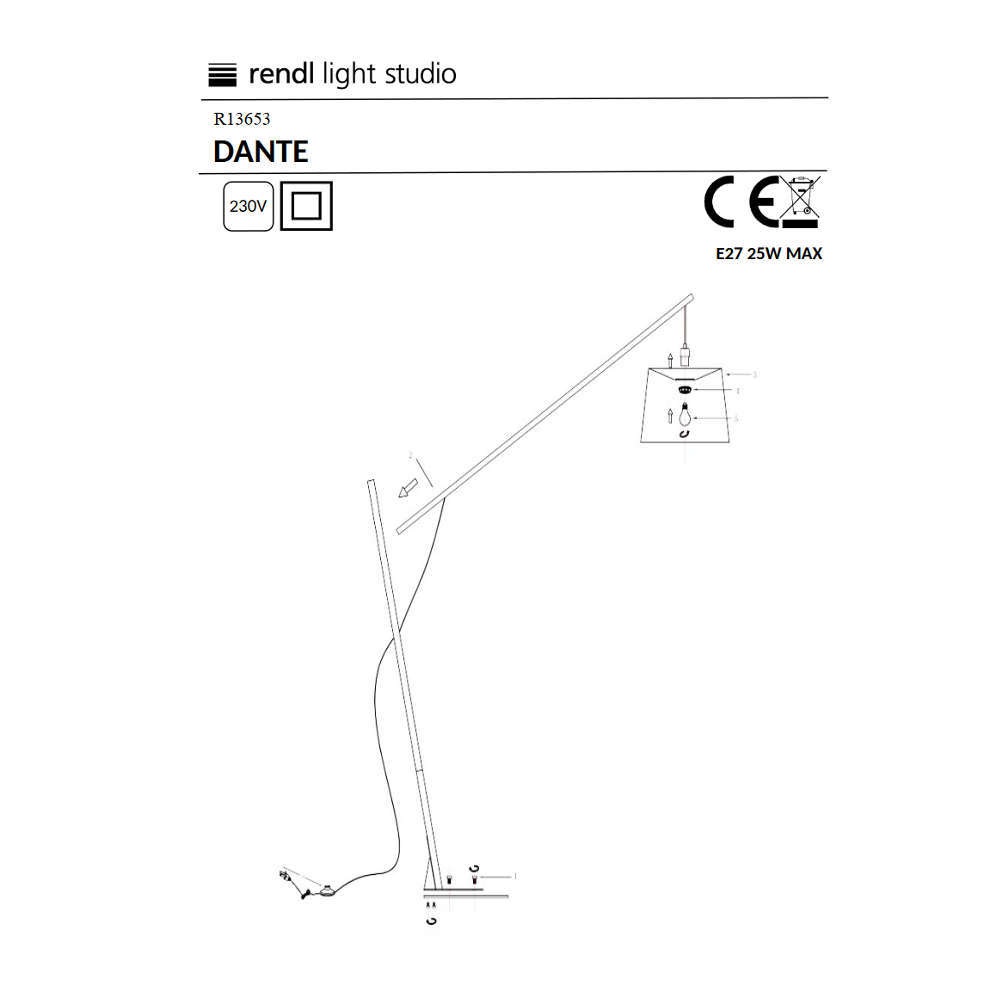 Лампион Rendl Light Studio DANTE R13653 - масивни дизайнерска подова лампа, подходяща за просторни помещения в дома, офис или хотел. Комбинация от метал, дърво и текстилен абажур. Фасунга Е27 за избор на крушка по желание. Интегриран кабел с ключ.