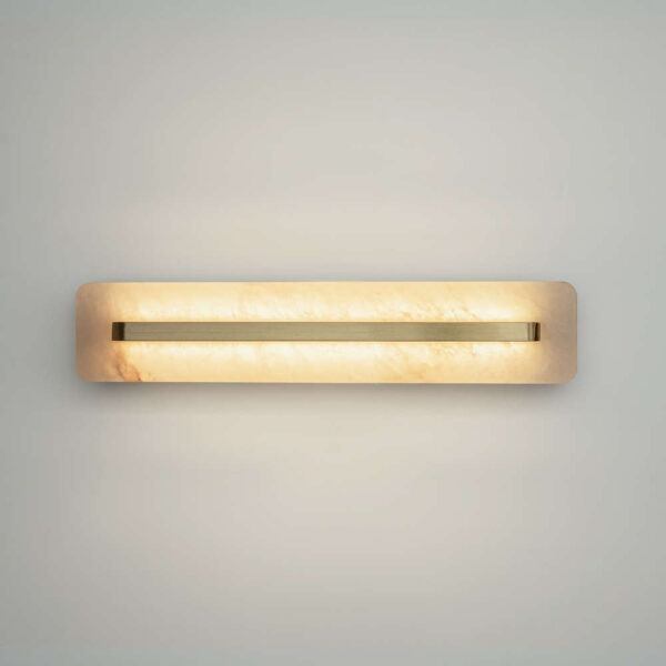 Луксозен LED аплик за стена модел MOD366WL-L14BS3K от серията Albatre на Maytoni – изработен от естествен алабастър и метал с покритие в сатиниран месинг. Съчетава класическата изисканост на естествения камък с модерна форма и топло, меко осветление 3000K.