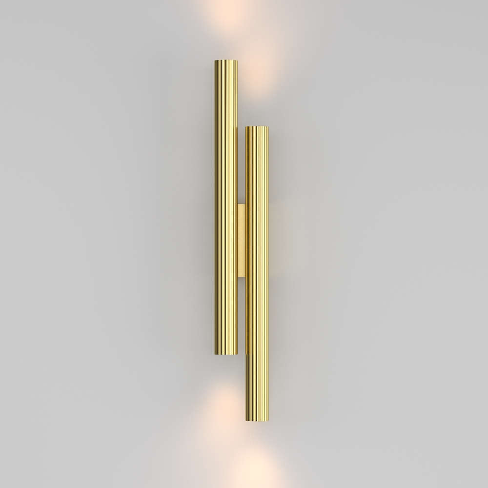 С височина 490 мм и тънък цилиндричен профил, тялото стои елегантно и издължено върху стената, превръщайки се в част от интериорния дизайн, а не само в източник на светлина.