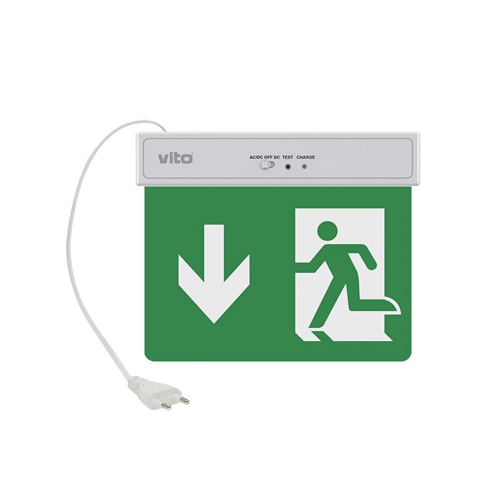 Аварийната LED табела Vito 5020160 е ефективно и надеждно осветително решение за безопасност в аварийни ситуации. С мощност 2W и цветна температура 6500K (студена бяла светлина), тя осигурява ясно видимо указание за изход. Табелата е оборудвана с литиево-йонна батерия (14500 Li-ion, 3.7V, 500mAh), която гарантира дълготрайно осветление при прекъсване на електрическото захранване. Перфектна за монтаж в обществени сгради, търговски обекти и индустриални пространства. Аварийната LED табела Vito 5020160 разполага с кабел с щепсел с дължина 400mm.