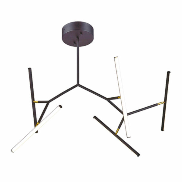 LED димируем полилей Zambelis 20710 с черно матирано покритие и модерна разчупена форма. Многораменната LED лампа е със светещи с топла светлина профили, които завършват с подвижни елементи. Ротацията се осъществява с прецизно изработена подвижна свръзка в матиран златист цвят, завършваща елегантно осветителното тяло и внасяща дизайнерски елемент. В допълнение, полилеят е окомплектован с димируем драйвер за Triac димиране, така че можете да създадете перфектната атмосфера.