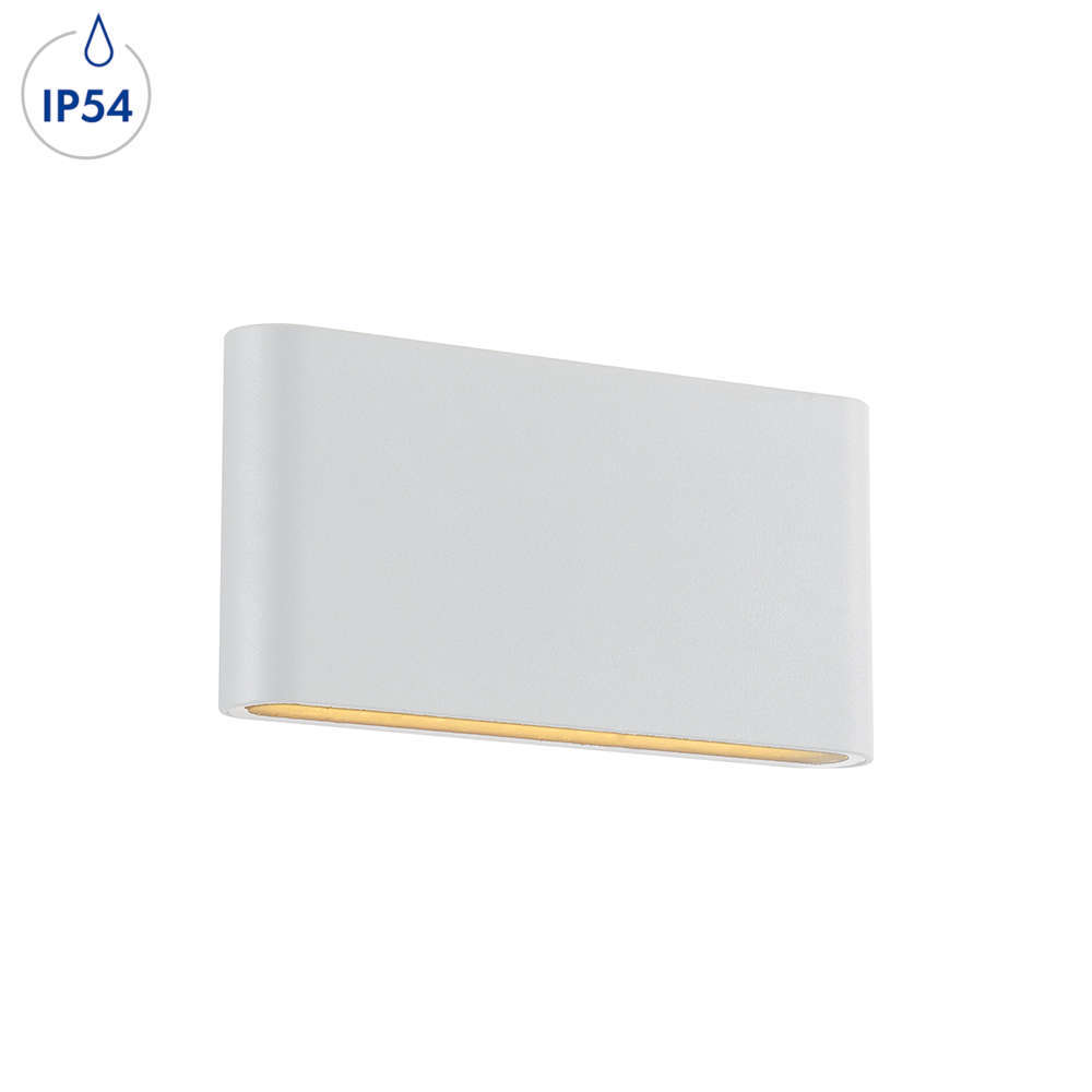 LED фасаден аплик Aca Lighting ALBI LG2632W - архитектурно тяло за външно осветление с вграден LED, за използване на открито. Има степен на защита IP54, което го прави подходящо за осветяване на фасади, огради, тераси, външни стълби. Здравият бял корпус е изработен от алуминий с добавен стъклен дифузер и интегриран светлоизточник, двустранно излъчващ топла 3000К светлина с насоченост от 60°. Серията външни осветителни тела Aca Lighting Albi се предлагат и в цвят антрацит.