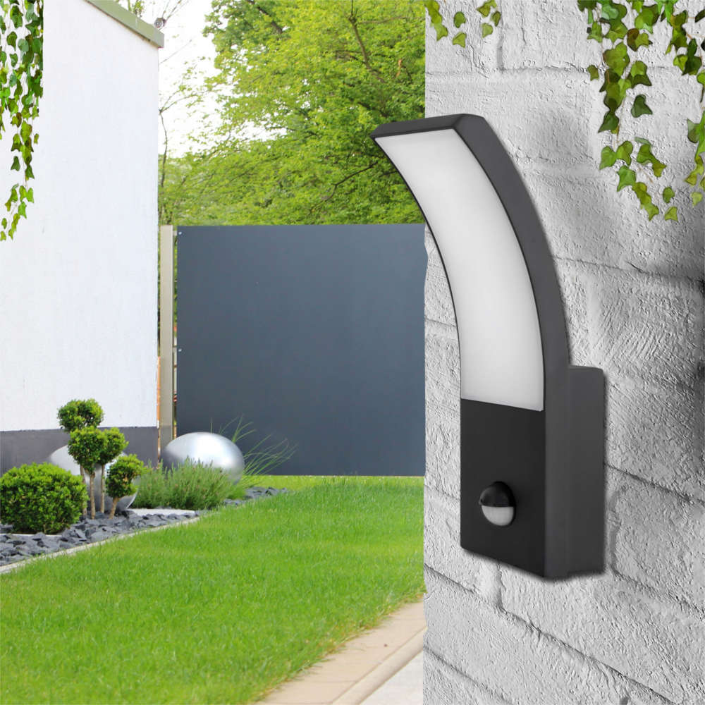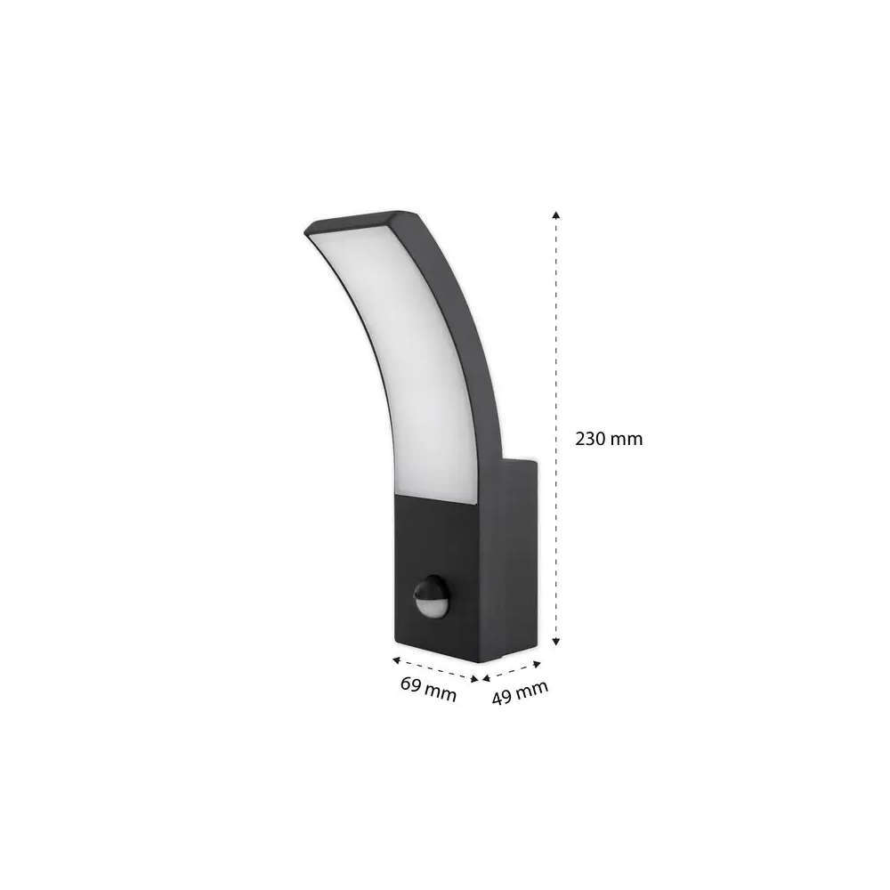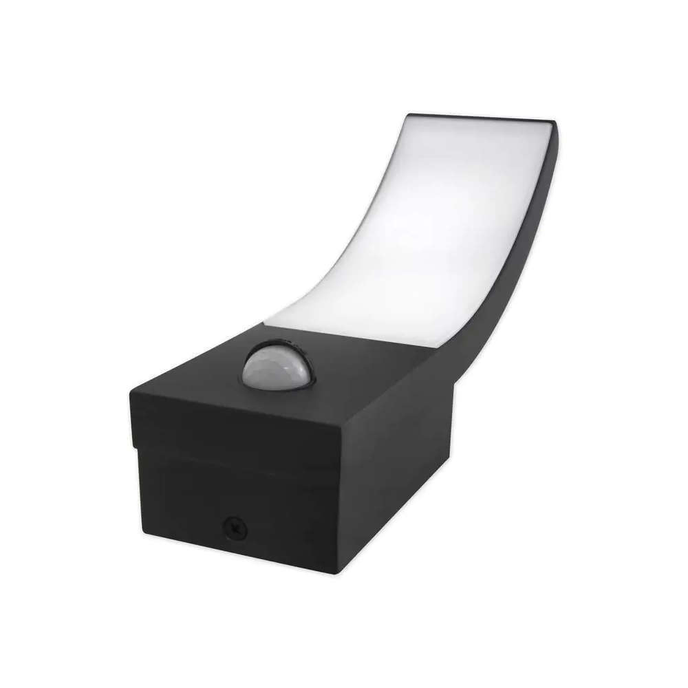 Външно осветително тяло за стена с датчик за движение 9W, 500lm, 4000К, IP54, алуминий и PC, черен цвят