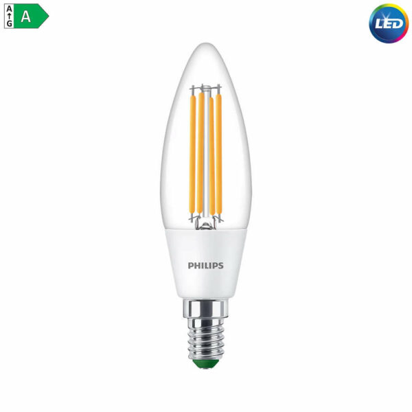 С новите модели ултра ефективната LED крушка на Philips имате перфектната лампа за модернизация, която ще ви помогне да спестите енергия и пари с висококачествен, дълготраен и ултраенергийно ефективен светодиод. Водещата иновация на Philips в LED осветлението усъвършенства по-ранните версии на своите модели, за да ви предостави най-високо производителната E14 B35 LED крушка. Това е най-енергийно ефективната LED лампа от Philips Lighting с най-висок клас енергийна ефективност - A. Животът от 50 000 часа помага да се удължи цикълът на подмяна, намалявайки по този начин отпадъците. Това е не само продукт създаден с мисъл за щадене на природата, но също така затвърждава качеството на светлината на марката Philips.