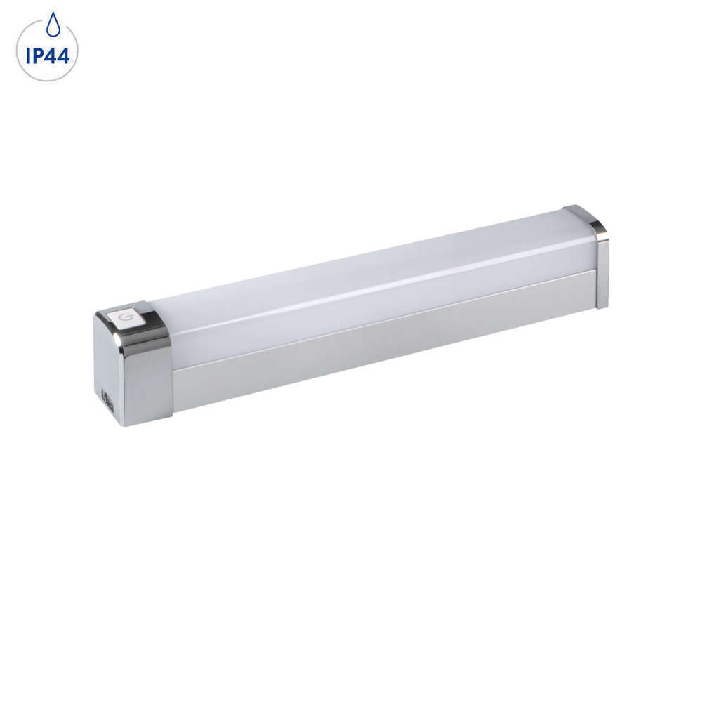 Линейно осветително тяло за баня IP44, монтаж на стена или таван, 600 mm, с ключ, тяло в цвят хром