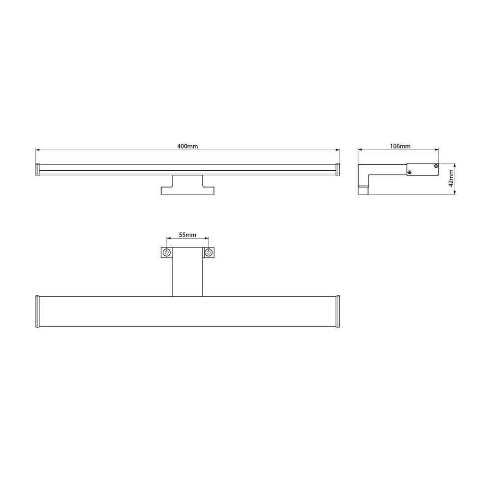 Осветително тяло за баня LED 8W, IP44, 220V, 4000K, 640lm, черно тяло, за монтаж на стема, шкаф или огледало, корпус алуминий и PC