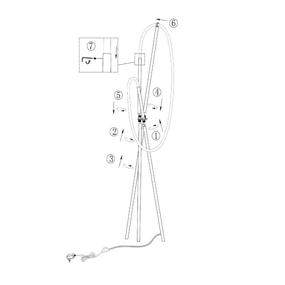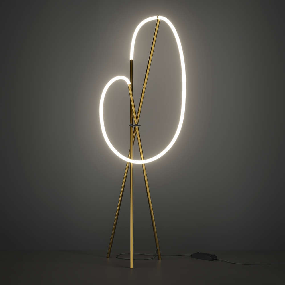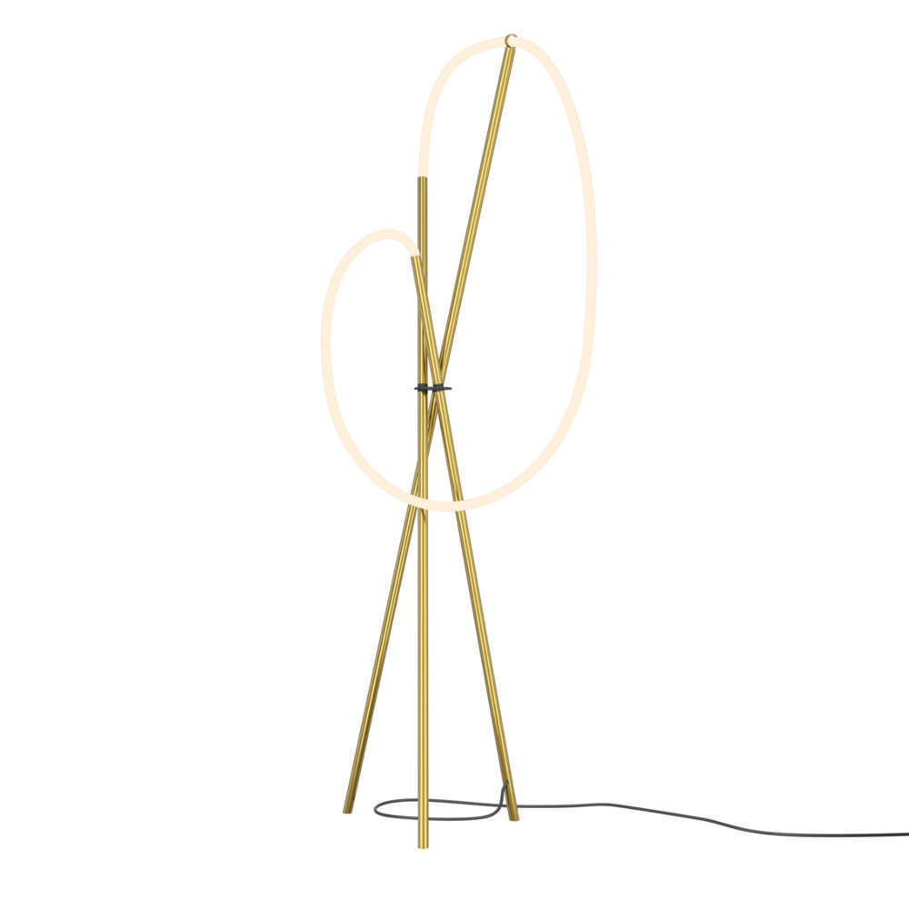 Подова лампа LED 36W, 2500lm, 3000K, IP20, 360°, кабел с ключ и възможност за димиране, алуминий и силикон, цвят месинг