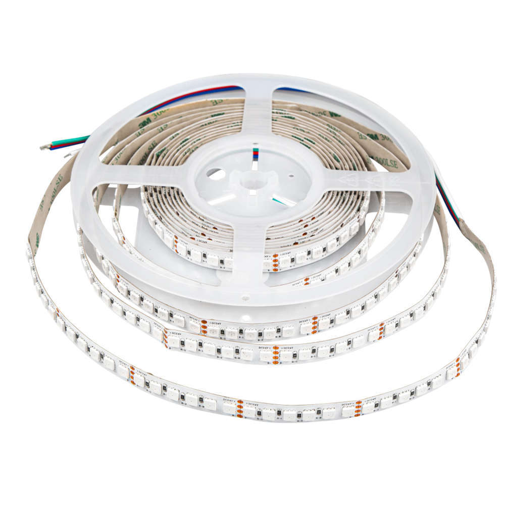 Професионална LED лента BERGMEN Setti 24VDC 28.8 W/m RGB 120x5050 SMD 12mm IP20 ролка 5м. Надеждни LED RGB ленти от професионалната серия на полския производител BERGMEN с широчина 12 мм и 120 броя светодиоди RGB 5050 SMD с плътна еднородна светлина без горещи точки. Лентата изисква захранване 24 V DC, има консумация 28.8 W/m и осигурява светлинен поток 1200 lm/m на 120°.