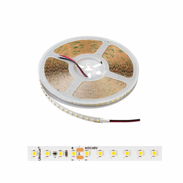 LED ленти 48V - професионални LED ленти 48V DC с мощност 7W/m, тип диоди SMD3528, гъстота 112 броя на метър за употреба в закрити помещения. Ultarlux LED лента за професионална употреба работеща в голям температурен диапазон (-10°C/+40°C), излъчваща неутрална 4200К светлина.